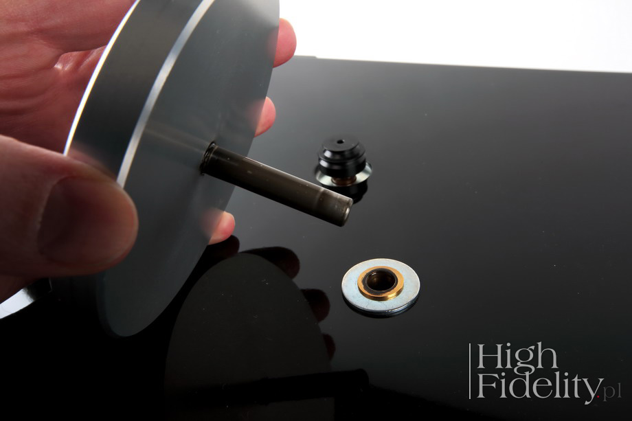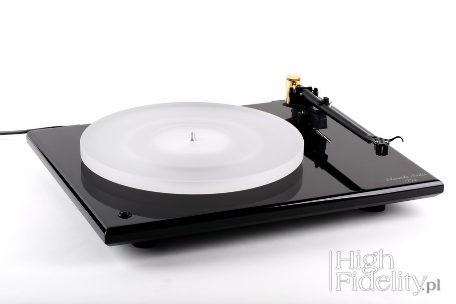 Jeślibym miał zwrócić państwa uwagę na rzeczy poświęcone w imię dużej skali dźwięku, mocnej barwy i wysokiej dynamiki, byłyby to ograniczona selektywność i nie do końca zwarty niski bas. Jak na tego typu konstrukcję, tj. lekką i nieodsprzęganą, ten ostatni schodzi naprawdę nisko i jest po prostu dobry. Ale też atak, zwartość, sprężystość elektrycznego basu, instrumentów elektronicznych itp. będą wycofane, nie do końca oczywiste. Także wysoka góra jest modyfikowana i idzie w kierunku słodkiego, gęstego grania bez rozdzielczości, jaką dostajemy w niższych zakresach pasma. Podsumowanie Efekt: ciepłe, dynamiczne granie z mocnym pierwszym planem i gęstą średnicą. Trzaski są ciche, podobnie jak szum przesuwu. Gramofon pracuje bardzo cicho, co dobrze świadczy o zastosowanym silniku i łożysku głównym. TT2SE możemy rozbudować o kolejne elementy, co dodatkowo podnosi jego wartość. Proszę posłuchać, przynajmniej będziecie państwo wiedzieli, co tracicie wydając pieniądze gdzie indziej: wyróżnienie RED Fingerprint. ![]() TT2SE to gramofon, będącej własnością TALK Electronics, marki Edwards Audio. Na materiałach firmowych i instrukcji obsługi wyraźnie wskazano na taką właśnie zależność, co uwidoczniliśmy w tabelce rozpoczynającej test. Jest to gramofon lekki, nieodsprzęgany, produkowany w systemie OEM, z poprawkami i zmianami przygotowanymi przez Edwards Audio, przez inną brytyjską firmę – Rega Research. Dlatego też obok logotypu Edwardsa znajdujemy zwykle również logotyp swego rodzaju stowarzyszenia „Still Made in Britain”. Kontra do „Made in China” jest jednoznaczna. TT2SE ma dość prostą konstrukcję, ale z wyrafinowanymi detalami. Podstawę wykonano z 25 mm płyty MDF odpornej na wilgoć, pokrytej lakierem o wysokim połysku. Synchroniczny silnik AC marki Allied Motion został zamontowany na sztywno do obudowy, a jego oś znalazła się bardzo blisko osi łożyska talerza. To patent Regi, tutaj nieco zmodyfikowany – w TT2SE oś jest przesunięta nieco bardziej w lewą stronę. Od spodu wraz z silnikiem zamontowano sterującą nim elektronikę. Jest ona ręcznie ustawiana dla każdego silnika po to, aby ten jak najmniej drgał. Moment obrotowy przenoszony jest na aluminiowy subtalerz za pomocą bezszwowego, krótkiego paska (to dlatego silnik jest tak blisko). Ma on niebieski kolor i jest czymś w rodzaju „apgrejdu” w stosunku do zwykłego, czarnego paska; nosi adekwatną nazwę Little Belter. Aluminiowy subtalerz połączony jest ze stalową osią łożyska. Oś pracuje w mosiężnym łożu i opiera się na ceramicznej kulce o średnicy fi 5 mm. Na subtalerz nakładamy 18 mm talerz główny z mlecznego akrylu. Jest on wykonywany specjalnie dla Edwards Audio i nie ma na nim maty.