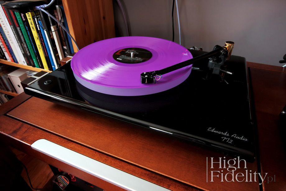 Przypomnijmy, że ramiona Regi są okablowane na „stałe”, tj. z gramofonu wychodzą interkonekty połączone bez przerw z pinami wkładki. Brak punktów lutu jest sporą zaletą. Przy okazji skazani jednak jesteśmy na firmowe kable, w przypadku Regi kable Klotz. To dobre, używane w studiach i na estradzie profesjonalne interkonekty, nie ma jednak co ukrywać, że to zaledwie podstawowa półka jakościowa. W TT2SE kabel jest odłączany. TT2SE TT2SE jest następcą TT2 i jest gramofonem nieodsprzęganym, lekkim i w hierarchii firmowej sytuuje się na drugim miejscu od góry. Jego podstawa to po prostu płyta MDF o grubości 25 mm, lakierowana na wysoki połysk – w teście miała kolor czarny, ale można zamówić także kolory czerwony lub biały. Od spodu do podstawy przykręcono silnik napędowy wraz z elektroniką. Na zewnątrz wychodzimy więc kablem sieciowym 240 V/50 Hz (z płaską wtyczką). Na aluminiowy subtalerz nałożony jest talerz z mlecznego akrylu. Całość stoi na trzech gumowych nóżkach. Ramię ma zawieszenia kardanowe, tj. z dwoma punktami podparcia – poziomym i pionowym. TALK nazywa go TT202, ale wiadomo przecież, że jest to ramię Regi RB202, produkowane w systemie OEM. Wersja zastosowana w TT2SE jest jednak znacząco zmodyfikowana – zamiast plastikowej rurki na końcu i okrągłej przeciwwagi zastosowano mosiężne, złocone elementy – gruby trzpień i wiszący na nim walec. Punkt ciężkości tej przeciwwagi jest dość nisko, co jest zaletą. Jak mówiłem, interkonekt podłącza się osobno. W komplecie dostajemy dwa, osobne kabelki, każdy o impedancji 75 Ω, a więc używane do transmisji cyfrowej. To nie jest przypadek – japońskie firmy, np. Oyaide i Acrolink, również stosują w interkonektach analogowych kable cyfrowe 75 Ω, a to ze względu na ich znacznie lepsze ekranowanie. Przy przesyle tak małych sygnałów, jak z wkładki gramofonowej jest to bardzo ważne. Testowany gramofon jest ulepszoną wersją wcześniejszej konstrukcji TT2, ale i on może być ulepszony. Przede wszystkim przez dodanie zewnętrznego kontrolera prędkości obrotowej SP1. Ułatwimy sobie w ten sposób życie, ponieważ zmiana prędkości nie będzie już wymagała przełożenia paska napędowego, ale też poprawimy jakość dźwięku. Dodatkową pomocą może być ISO1 – filtr sieciowy, który dodatkowo oczyści napięcie zasilające. SETUP Gramofon Edwards Audio jest gotowy do grania (niemal) od razu po wyjęciu z pudełka. Firma oferuje go wraz z wkładką Edwards Audio Zephyr C200 (modyfikowana wersja wkładki Audio-Technika) lub Goldring 2100. Wkładka jest ustawiona i wykalibrowana. Do nas należy jedynie nałożenie paska napędowego na oś silnika i subtalerz oraz ustawienie nacisku igły. Precyzyjne ustalenie wagi sprawia nieco problemów, ale da się to opanować. Po maksimum 20 minutach od otwarcia pudełka z głośników popłynie muzyka. Dodajmy, że silnik użyty w tym gramofonie ma małą moc, dlatego należy używać szczoteczki czyszczącej płyty z wyczuciem, inaczej talerz się zatrzyma. ![]() Złożenie gramofonu jest naprawdę proste. Skomplikowałem je nieco, zamawiając do testu wersję bez wkładki, ponieważ chciałem posłuchać go z moimi wkładkami, przede wszystkim Denon DL-103, z którą słuchałem wszystkich gramofonów, począwszy od 2004 roku. W teście użyłem przedwzmacniacza gramofonowego RCM Audio Sensor Prelude IC, a także transformatora dopasowującego Miyajima Laboratory ETR-Stereo. Jak wspomniałem, w części odsłuchów interkonekt dostarczany z gramofonem został zastąpiony kablem Supra Phono-CS. ![]() Płyty użyte w odsłuchu (wybór)