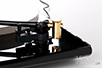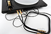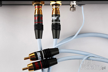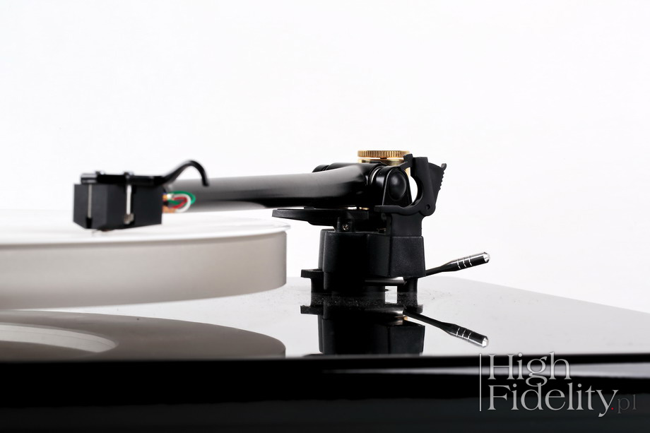 Gramofon stoi na trzech gumowych nóżkach. Wychodzi z niego, zamontowany na stałe, kabel zasilający (240 V/50 Hz), a przy drugiej krawędzi bocznej widać dwa, ładne gniazda RCA oraz zacisk uziemienia. W klasycznych ramionach Regi kabel montowany jest na stałe i nie ma osobnego kabla uziemiającego. Wersja Edwards Audio ma wykonywany na maszynach CNC trzpień po którym przesuwa się przeciwwaga o kształcie walca z wyciętym otworem. Od góry zamontowano w nim szeroką, dokręcaną do owego trzpienia, nakrętkę. Obydwa elementy wykonane są ze złoconego mosiądzu. Gramofon soi na trzech, prostych, gumowych nóżkach. Ważne więc, aby zapewnić mu solidna podstawę i aby stał niezbyt blisko kolumn. ![]() MIKROTEST Supra PHONO-CS