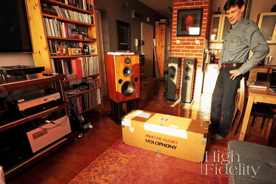 Każdy taki przypadek to osobna Historia. Pan Andrejczuk w poprzednim życiu był fotografem. Wraz z Modelem Numer Trzy swoich kolumn przywiózł mi w prezencie, wydany przez National Geographic, album Biebrza ze zdjęciami swojego autorstwa (Cezariusz Andrejczuk, Marek Konarzewski, Biebrza, Warszawa 2008). Nie drążyłem tematu, ale wyraźnie widać, że wciąż chodzi o tę samą pasję, która kazała mu latami czekać w terenie na tych kilka zdjęć. Muzyka jest bowiem dla niego przeżyciem tak osobistym i tak intensywnym, że musiał się jej poświecić, nie zważając na koszty. Holophony Numer Trzy Historia zaczyna się typowo. Jako aktywny meloman i audiofil szef Avatar Audio chciał słuchać w domu muzyki, przede wszystkim klasycznej, tak aby dostać te cechy dźwięku na żywo, na których mu zależało najbardziej. Specjalnie w tym celu założył więc firmę Graj-End, która następnie przekształciła się w Avatar Audio. I tutaj „typowość” się kończy. Jak pisałem w poprzednich testach, w brzmieniu ceni sobie ponad wszystko wierność, przejrzystość, szybkość. Aby sprostać tym wymogom sięgnął po głośniki przed wielu lat o papierowej membranie i materiałowym zawieszeniu. Numer Trzy to model dwudrożny, bas-refleks, wolnostojący. Głośnik wysokotonowy jest typowy, ale tylko dla tego producenta – to stożkowy przetwornik z papierową membraną o średnicy fi 100 mm. Pochodzi on z lat 60. XX wieku. Średnie i niskie tony również odtwarza papierowy, ale większy – średnica fi 250 mm – głośnik. Ma on materiałowe zawieszenie, o kształcie zbliżonym do fałdy gumowej znanej ze współczesnych przetworników – ten z kolei opuścił fabrykę w latach 70. Tego typu przetworniki mają stosunkowo niewielkie wychylenie i znikomą masę membrany. Projektowane były w czasach, kiedy kino domowe było tylko dla najbogatszych i nikt jeszcze nie wiedział, że aktywny subwoofer będzie czymś zupełnie normalnym. W ich działaniu chodziło więc o jak najszybsze oddanie impulsu. Co niesie za sobą problemy. Tego typu głośnik jest bardzo przezroczysty na wszystko, co się z nim dzieje. Na przykład na obudowę. Pan Cezariusz przez długi czas dobierał grubość ścianek ich kształt, a potem eksperymentalnie ustalał, w których miejscach należy nakleić filc, minimalizujący odbicia. A potem drugie tyle spędził na strojeniu zwrotnic. To praca, która nigdy się nie kończy. Numer Trzy to kolumny w ofercie szczególne – mają nieco niższą skuteczność niż modelu Dwa i wyższą wytrzymałość mocowa, co powoduje, że – przynajmniej potencjalnie – to konstrukcje, z którymi można zagrać bardziej zróżnicowany materiał muzyczny. ![]() Płyty użyte w odsłuchu (wybór)