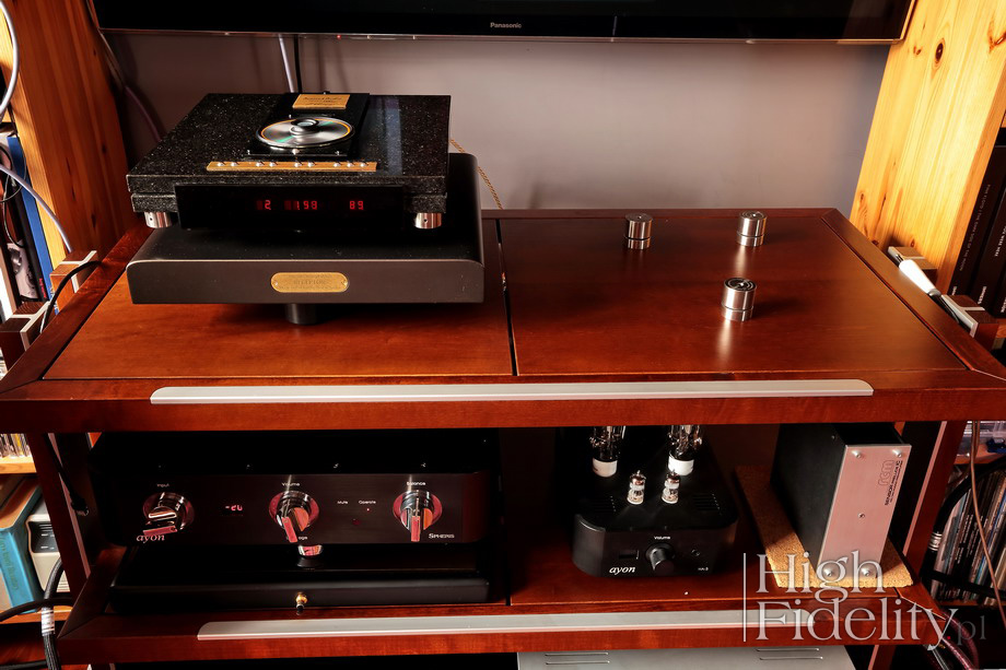 AKCESORIA ANTYWIBRACYJNE - Stolik: Finite Elemente PAGODE EDITION, opis TUTAJ/wszystkie elementy - Platformy antywibracyjne: Acoustic Revive RAF-48H, artykuł TUTAJ/odtwarzacze cyfrowe | Pro Audio Bono [Custom Version]/wzmacniacz słuchawkowy/zintegrowany, recenzja TUTAJ | Acoustic Revive RST-38H/testowane kolumny/podstawki pod testowane kolumny - Nóżki antywibracyjne: Franc Audio Accessories Ceramic Disc/odtwarzacz CD /zasilacz przedwzmacniacza /testowane produkty, artykuł TUTAJ | Finite Elemente CeraPuc/testowane produkty, artykuł TUTAJ | Audio Replas OPT-30HG-SC/PL HR Quartz, recenzja TUTAJ - Element antywibracyjny: Audio Replas CNS-7000SZ/kabel sieciowy, recenzja TUTAJ - Izolatory kwarcowe: Acoustic Revive RIQ-5010/CP-4 - Pasywny filtr Verictum X BLOCK SŁUCHAWKI - Wzmacniacze słuchawkowe: Bakoon Products HPA-21, test TUTAJ | Leben CS300XS Custom Version, recenzja TUTAJ - Słuchawki: Ultrasone EDITION 5, test TUTAJ | HIFIMAN HE-6, recenzja TUTAJ | Sennheiser HD800 | AKG K701, recenzja TUTAJ | Beyerdynamic DT-990 Pro, wersja 600 Ohm, recenzje: TUTAJ, TUTAJ - Standy słuchawkowe: Klutz Design CanCans (x 3), artykuł TUTAJ - Kable słuchawkowe: Forza AudioWorks NOIR, test TUTAJ CZYSTA PRZYJEMNOŚĆ - Radio: Tivoli Audio Model One |