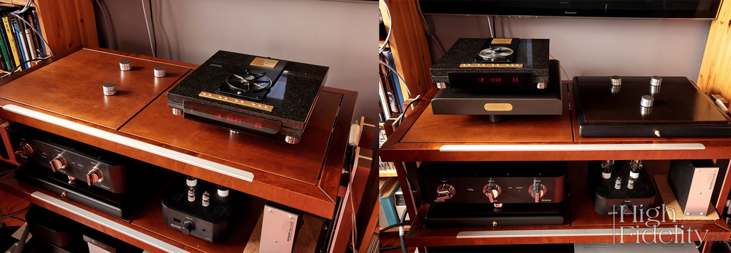 Grubość platformy wynosi 57 mm, wysokość kompletu to ok. 140 mm. Możemy wybrać sobie kolor platformy - standardowe to rubinowy i szarobrązowy, ale na życzenie firma wykona je w dowolnym kolorze. Komplet podkładek Numer Jeden składa się z 6 stalowych krążków (3 podstawki i 3 pokrywki) z materiałem antywibracyjnym na spodzie oraz 3 kulek z drewna egzotycznego o średnicy 26 mm. Wysokość krążka: 12mm, średnica krążka: 50mm, średnica kulki: 26 mm, wysokość kompletu: 40 mm. Firma deklaruje, że przetestowała 9 gatunków drewna i ten użyty przez nią okazał się najlepszy. Do wyboru są dwie wersje kolorystyczne: srebrna (stal nierdzewna) i czarna (stal malowana proszkowo). Co ciekawe, Avatar zaleca, jeśli to możliwe, aby zrezygnować z górnej nakładki i stawiać urządzenia bezpośrednio na kulkach. Zgadzałoby się to z sugestiami firmy Stacore, która w górnej części swojej platformy nie zastosowała soczewkowego wgłębienia, a dała płaską płytkę ze stali, na której kulka się opierała. Podstawki magnetyczne Avatara są dość skomplikowanym elementem mechanicznym. Widać w nich trzy warstwy odsprzęgnięcia: na spodzie jest to lakierowany korek, następnie poduszka magnetyczna, a na górze twarde kulki. Górna część jest swego rodzaju osobną „nóżką” antywibracyjną, ponieważ dwa aluminiowe elementy są w niej odsprzęgnięte przez trzy gumowe kulki. Ich góra i dół mocowane są na wcisk, za pośrednictwem gumowego ringu. Na dolną część całej stopy naciągnięta została koszulka termokurczliwa. Ponieważ nóżki powinny pracować w odpowiednim „ugięciu” trzeba dobrać do konkretnego urządzenia ich ilość (trzy lub cztery), a także wielkość. Jeśli odsprzęgany produkt jest zbyt lekki, warto go dociążyć opcjonalnym dociskiem Receptor (390 zł). Wszystkie elementy są solidnie wykonane, ale wiemy od razu, że to raczej warsztat niż fabryczka. Chodzi przede wszystkim o wykończenie powierzchni – zarówno z surowego aluminium, jak i lakierowanych. Produkty dużych (jak na tę branżę) firm, jak Finite Elemente, czy Symposium Acoustics są precyzyjniej wykończone i widać, że chodzi o znacznie większą produkcję. Ale jest w produktach Avatar Audio coś, co daje pewność, że zostały wykonane przez pasjonata, który dokładnie wie, czego chce. Estetyka jest dla niego ważna, ale wtórna wobec funkcji. ![]() Testy porównawcze zakładają ustalenie punktu odniesienia. Musi być on znany, przede wszystkim poprzez porównania do innych punktów odniesienia. Buduje się w ten sposób coś w rodzaju „piramidy”, w której szczytem jest obecnie używany produkt. Tak powstaje system referencyjny, który jest z jednej strony najlepszym, jaki jest do dyspozycji, a z drugiej po prostu punktem odniesienia. Wszystkie nowe produkty są więc porównywane do tego, co akurat jest dla prowadzącego taki test najlepsze. W moim przypadku punktem odniesienia jest przede wszystkim stolik Finite Elemente Pagode Edition. Wbrew pozorom nie jest on wcale ciężki, ani bardzo sztywny. Przeciwdziała się w nim drganiom poprzez umiejętny rozkład masy i zastosowanie w każdej półce tzw. „rezonatorów”, które wygaszają drgania w wąskim zakresie, minimalizując ich intensywność. Całość stoi na dużych nóżkach tego producenta odsprzęgniętych za pomocą kulek ceramicznych. To stolik „strojony”, a nie masowy. Jego problemem są półki, cienkie i łatwo wpadające w wibracje. Dlatego od lat stosuję platformy pneumatyczne Acoustic Revive RAF-48H oraz nóżki antywibracyjne Ceramic Disc Classic polskiej firmy Franc Audio Accessories. Ostatnio pod odtwarzaczem CD zastąpiłem je nóżkami Pro Audio Bono Ceramic 5N+. Tak wygląda punkt odniesienia służący do oceny innych platform i nóżek antywibracyjnych. Do niedawna był to najlepszy system tego typu, jaki znałem. Ale potem usłyszałem, co potrafi kosztowna podstawa Stacore Advanced i już wiem, co muszę poprawić. Jakby nie było to właśnie do stolika Finite, platformy Acoustic Revive i nóżek Franc Audio Accessories porównywana była platforma Numer Dwa Avatar Audio. |