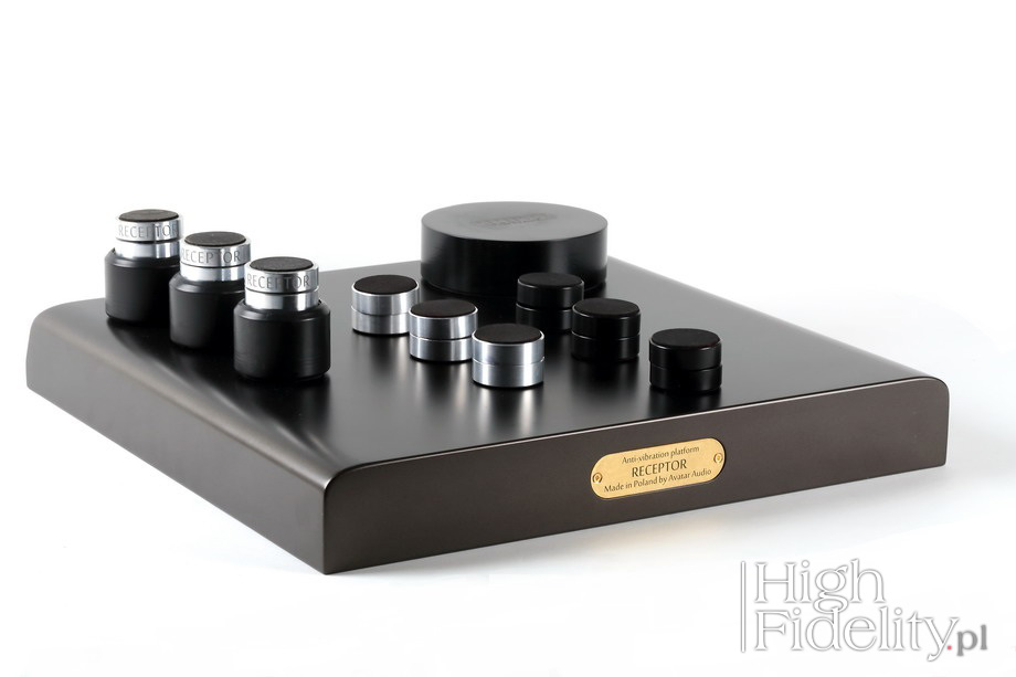 A stąd już niedaleka droga do samodzielnych produktów mających na celu minimalizowanie drgań. W ofercie Avatar Audio znajdziemy trzy różne elementy, które w odpowiednich kombinacjach mogą stworzyć cztery różne, całkiem rozbudowane platformy antywibracyjne; wszystkie zaliczane są przez producenta do serii Receptor. Podstawą każdej z nich są „podkładki antywibracyjne” o numerach od jeden do cztery, z czwórką oznaczającą najtańszez nich. Ich budowa jest dość prosta: to dwa aluminiowe lub stalowe elementy z wyfrezowanym wgłębieniem, w którym umieszczana jest kulka ceramiczna lub wykonana z drewna egzotycznego albo z „firmowego materiału”, jak o niej czytamy na stronie producenta. Pomysł znany z innych firm, ostatnio widziany przez nas w ważącej niemal 100 kg platformie antywibracyjnej Stacore Advanced. Tam też znajdą państwo informacje dotyczące podziału platform. Drugi typ nóżek Avatara stosowany jest przez tę firmę do odsprzęgnięcia kolumn. Każda z nich łączy w sobie miękkie elementy tłumiące drgania oraz zawieszenie magnetyczne. Do wyboru są dwa warianty, dla cięższych lub lżejszych urządzeń. Obydwa typy nóżek można połączyć z platformą antywibracyjną. Firma proponuje platformy w trzech rozmiarach: 350×350 mm, 450×400 mm i 550×450 mm, ale na zamówienie wykonuje dowolny rozmiar. Testujemy wersję średnią, tj. 450x400 mm. Platformy wykonane są z „antywibracyjnego materiału firmowego”,. W ofercie znajdziemy cztery typy platform, różniące się od siebie typem nóżek z nią współpracujących. Nr 1 ma podstawki magnetyczne pod spodem i na wierzchu. Nr 2 stoi na podstawkach magnetycznych, a na wierzchu ma podkładki kulkowe. Nr 3 ma dwa komplety podkładek kulkowych. Nr 4 ma tylko jeden komplet podkładek kulkowych, pod spodem. NUMER DWA Platforma Numer Dwa składa się z trzech elementów: