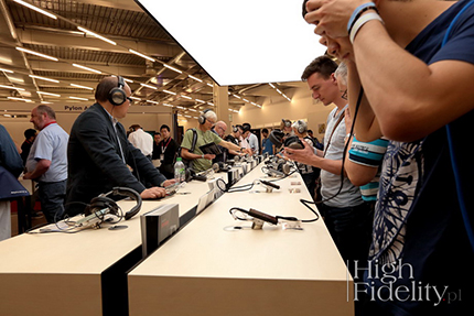 Nie bez przyczyny swoją relację z tegorocznej odsłony High Endu zacząłem od Państwa Środka. Czy się to komuś podoba, czy nie, Chińczycy niebawem dołączą do najważniejszych graczy naszej branży, podobnie jak robią to w innych specjalizacjach, od nauki zaczynając, na filmach kończąc. Również w stolicy Bawarii było ich wyraźnie więcej niż przed rokiem; szczególnie upodobali sobie sprzęt mobilny (słuchawki, przenośne odtwarzacze plików) i biurkowy (małe wzmacniacze słuchawkowe), na którym w tym roku – jak umówiłem się z redaktorem „High Fidelity” – miałem się skupić. Główną część relacji z monachijskiej możecie już Państwo czytać od 1 czerwca (więcej TUTAJ). Teraz chciałbym zaprosić wszystkich do towarzyszenia mi w zatłoczonych halach centrum MOC i poszukiwania wszelkich możliwych stoisk, gdzie to do słuchawek należy ostatnie słowo. Organizatorzy High Endu starają się przyciągnąć – chociaż nieśmiało i bez takiego wdzięku, jaki towarzyszy „naszej” wystawie Audio Video Show – młodych melomanów, którzy w przyszłości (nieokreślonej) mogą stać się audiofilami. Najprościej do wkraczających dopiero w dorosłość osób uderzyć właśnie od strony przenośnego audio; to nas najbardziej kręci i to właśnie w taki sposób najczęściej obcujemy z muzyką. Dlatego też (już po raz kolejny) do życia powołany został Hör Bar i to właśnie on stanowić miał główną atrakcję dla ludzi zainteresowanych tematyką słuchawek. Został on wymyślony w bardzo fajny sposób; na zwartej przestrzeni otrzymaliśmy kilkanaście różnych modeli nausznych, które były podpięte do tego samego wzmacniacza i źródła. Co więcej, lista piosenek w każdym wypadku była identyczna, mogliśmy więc porównywać możliwości nauszników właściwie 1:1. Oczywiście niektórzy ludzie mogą narzekać, że w ten sposób było się skazanym z góry na utwory, których się nie zna lub nie lubi; inni podniosą larum, że nie wszystkie słuchawki muszą dobrze współpracować z tą samą elektroniką – i to też będzie prawda. Trudno mi jednak (przynajmniej póki co) wyobrazić sobie sytuację, która lepiej oddałaby sprawiedliwość wszystkim producentom. Każdy wiedział do czego jego sprzęt zostanie podłączony i co będzie odtwarzał.