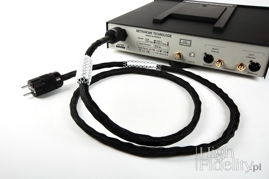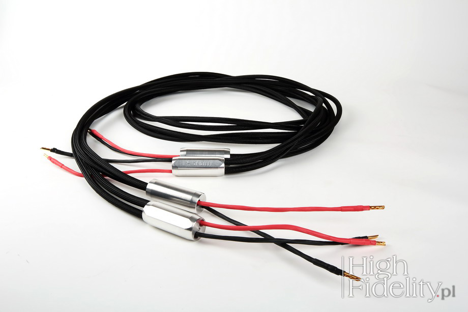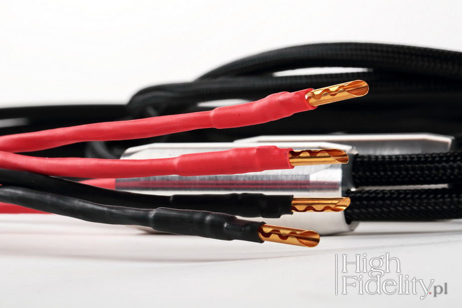 Kabel głośnikowy bardzo przypomina wyglądem kable The Chord Company. Patrząc na jego budowę, tj. osobno prowadzone żyły gorącej i zimnej, a także aluminiowe elementy łączące je na końcu, powiedziałbym, że na jakieś 99% inspiracją dla wyglądu były tu właśnie te brytyjskie kable. Żyła gorąca i ujemna są ekranowane i każda z nich składa się z czterech jednakowych drutów odizolowanych od siebie, czyli znowu „litz”, a dodatkowo każda z żył posiada dodatkową żyłę ekranującą. Stąd bardzo ważne jest podłączenie napisami w kierunku kolumn – opis znajduję się na stronie firmowej. Każda z żył składa się z kabelków o różnym przekroju w spienionym PTFE. Końcówki wykonano ze złoconej miedzi berylowej – to wtyki BFA. Wtyki bananowe BFA British Federation of Audio (BFA) to założona w 1965 roku organizacja, skupiająca brytyjskich producentów audio. Z czasem stała się ona czymś w rodzaju firmy standaryzującej. Ze względu na malejący wkład członków w jej funkcjonowanie w 2011 roku została zamknięta.Pozostały jednak po niej m.in. wtyki BFA – odmiana popularnych „bananów”. Historia ich powstania splata się z niezbyt udanymi pomysłami Unii Europejskiej, która niegdyś uznała, że standardowe gniazda głośnikowe montowane we wzmacniaczach, akceptujące wtyki bananowe mogą być zagrożeniem, ponieważ można do nich wpiąć wtyk sieciowy. Co by się miało stać – nie wiem. Wiadomo jednak, że niektóre brytyjskie firmy audio, jak Cyrus i Naim, dla przykładu, zaczęły stosować gniazda BFA, które to uniemożliwiały – pośrodku otworu był plastikowy trzpień. Także z tego powodu w gniazdach głośnikowych wciąż znajdujemy plastikowe zatyczki – tak wygląda obejście przepisów w wykonaniu branży audio. Specjalnie dla gniazd BFA zaprojektowano odpowiednie wtyki – banany BFA – mające postać rozciętej z jednej strony, sprężynującej rurki. Z drugiej strony mają one otwór o średnicy fi 8 mm dla przewodów o przekroju do 10 mm² (7AWG). Okazało się przy tym, że są one znacznie lepsze niż standardowe „banany”, chociaż wyglądają na bardzo proste elementy. Jak czytamy na stronie producenta, w kablu zasilającym serii Hiper S-1 została zastosowana budowa „trzy razy podwójna linia” w której „żyły zostały splecione specjalnie zaprojektowanym przez nas splotem, który zapewnia filtrowanie zakłóceń z sieci oraz minimalizuje emitowanie pola elektromagnetycznego”. Jak się wydaje, kabel nie ma ekranu. Każda z żył ma dwa druty z miedzi OCC w dielektryku PTFE. Wtyki są bardzo porządne – ich piny są wykonane z rodowanej miedzi. |