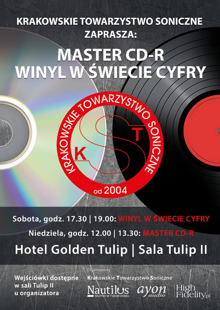 | WARSZTATY W tym roku rozbudowana będzie również część związana z warsztatami. Pod hasłem KRAKOWSKIE TOWARZYSTWTO SONICZNE ZAPRASZA: WINYL W ŚWIECIE CYFRY | MASTER CD-R Wojciech Pacuła, redaktor naczelny magazynu, poprowadzi aż cztery spotkania – dwa poświęcone cyfrowym nagraniom wydawanym na płytach LP, a w drugim dniu, na kolejnych dwóch, opowie o płytach Master CD-R, czyli najwierniejszemu odwzorowaniu taśm-matek – cyfrowych i analogowych – w formacie Compact Disc. Można będzie posłuchać wielu unikatowych nagrań. Zaraz potem, również w niedzielę, przenosi się ze swoimi magicznymi nagraniami do hotelu Sobieeski, sali Galeria 1 firmy Fezz Audio, aby poprowadzić warsztaty pt. LEGENDA FIRST IMPRESSION MUSIC. 1. WINYL W ŚWIECIE CYFRY Temat pierwszy – początki cyfrowej rejestracji dźwięku i pierwsze na świecie płyty LP nacięte z cyfrowych taśm-matek. Historia, ciekawostki, ale przede wszystkim dyskusja nad zaletami i wadami takiego rozwiązania. Pytanie główne, na które postaramy się znaleźć odpowiedź brzmi: Dlaczego tak wiele nowowydanych płyt LP naciętych z cyfrowych plików brzmi źle? Na warsztatach obecni będą członkowie Krakowskiego Towarzystwa Sonicznego, w tym Birgit Hammer-Sommer i Dirk Sommer, właściciele wydawnictwa Sommelier du son, specjalizującego się w wydawnictwach winylowych AAA. Dirk będzie dostępny dla uczestników, gotowy do rozdania autografów na swoich płytach.