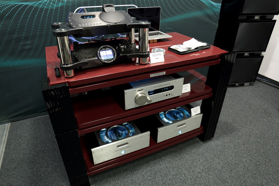- Wspomniana elektronika Chorda: nagrodzony przez nas odtwarzacz Blu MkII/DAVE i nowe produkty, przedwzmacniacz CPA 5000 oraz wzmacniacze mocy SPM 1400 MkII. Całość na stoliku firmy Rogoz Audio.