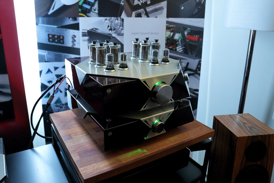 - Na zdjęciu nowy wzmacniacz Super Sound Device SE-PP60, p mocy 60 W na kanał, stojący na dopasowanym stylistycznie przetworniku cyfrowo-analogowym.