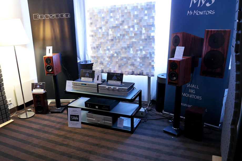 - Tym razem wraz z elektroniką Brystona pracowały kolumny My Monitors My5. Choć niewielkie mają obudowę z linią transmisyjną (podobnie jak PCM). To kolumny aktywne, ze wzmacniaczami B&O oraz aktywną zwrotnicą na układzie DSP.
