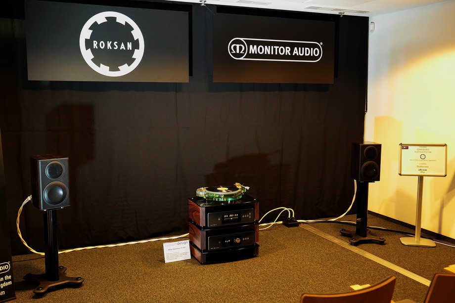 - Prezentacja firmy Roksan z serią Blak, gramofonem Radius 7. Po bokach kolumny Monitor Audio Platinum PLII 100. System stał na stoliku CustomDesign Milan Reference 10 HiFi.