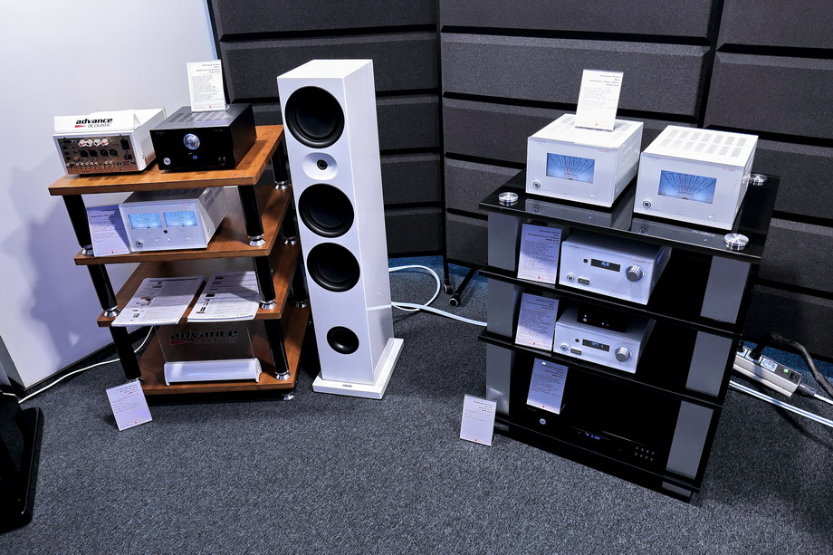 - Jedne z największych kolumn na wystawie – Sigma Acoustics MAAT o efektywności 102 dB i zasilające je mikrowzmacniacze FM Acoustic FM 108.