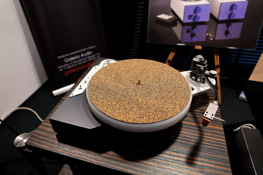 - W tym pokoju można było osłuchać marki Thoeress, którą niedawno prezentowaliśmy – cały system wraz z kolumnami. Gramofon – Cantano W + T.