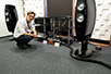 - Na tym zdjęciu starałem się uchwycić wszystko, co w firmie Avatar Audio najważniejsze: z tyłu kolumny Holophony Nr 3 z obudową z bambusa, bliżej nagrodzone przez nas kolumny Nr 4, a także nowe, warstwowe platformy antywibracyjne. Z boku, z lewej strony widać prototypowy wzmacniacz Primus Hybrid.