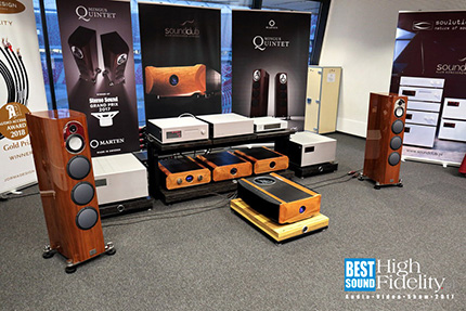 Jeden z najbardziej wiarygodnych dźwięków wystawy: system złożony z topowego przetwornika D/A Pacific DAC firmy LampizatOr, stojącego na platformie Stacore, oraz aktywnych kolumn Sveda Audio z premierowo pokazywanymi subwooferami Tower. Kolor bananowy – widzą to państwo? Zasilaniem systemu i filtrowaniem zakłóceń zajmowały się produkty firmy Verictum, które znają państwo z naszych łamów. Bardzo, bardzo smakowity dźwięk pomimo trudnego akustycznie pomieszczenia. lampizator.eu | sveda-audio.com | verictum.pl | stacore.pl ![]() MARTENS | TENOR AUDIO | SOULUTION | FRANC AUDIO ACCESSORIES | AURENDER