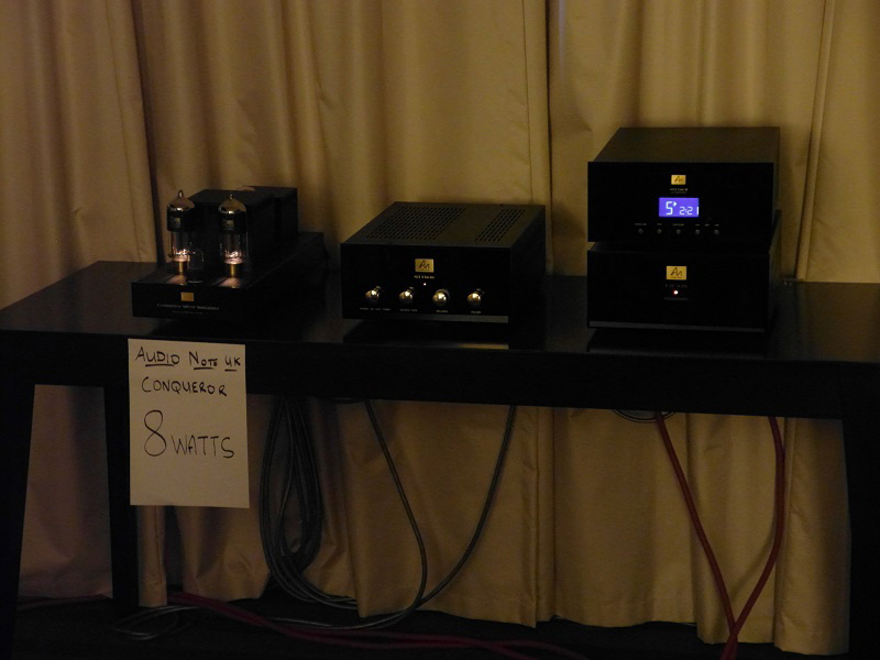 Audio Note (UK) pokazał natomiast prawie-budżetową propozycję. Pomijając pewną nonszalancję w przygotowaniu wystroju pokoju (który wołał o pomstę do nieba), AN UK zaprezentował świetnie brzmiący zestaw, mimo że oparty o kolejny wzmacniacz SET o mocy 8 W – chyba będę musiał zweryfikować swoje podejście do takich rozwiązań, za stosunkowo rozsądne pieniądze. Dźwięk był naprawdę dobry - pełny, mięsisty, naturalny i wciągający. Jakby mnie jakieś nieszczęście życiowe zmusiło do słuchania muzyki z plików, zamiast analogu, to z dużym prawdopodobieństwem sięgnąłbym po przetwornik AN.