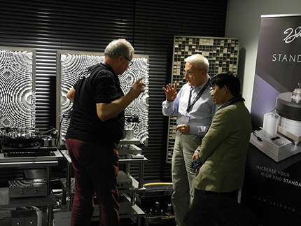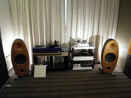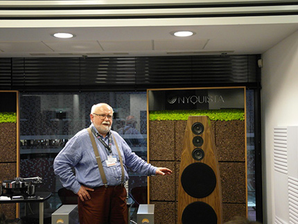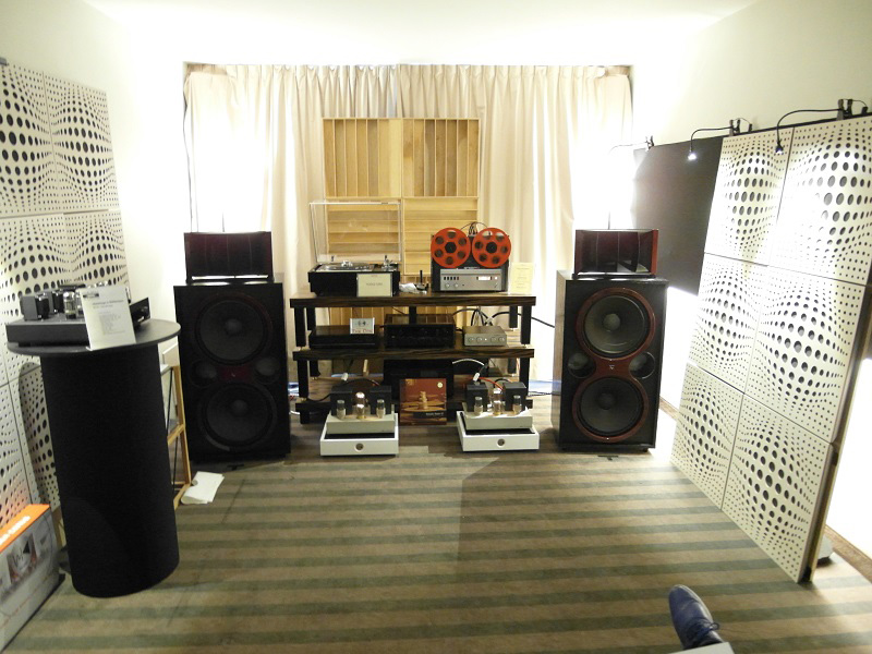 Obaj panowie, tym razem z Panem Januszem Sikorą Audio Note/Kondo z głośnikami „Type A”, inspirowanymi Snellami A, w wersji pana Wojciecha Szemisa. Przyznam szczerze, że co do zasady niezbyt mnie nie kręcą rachityczne wzmacniacze małej mocy z jednocyfrową ilością watów na wyjściu i głośniki ultrawysokiej skuteczności, ale w tym wypadku zestaw Kondo + Type A nawet na mnie zrobił naprawdę duże wrażenie. Przekaz był niezwykle plastyczny, wielowarstwowy a nawet wielowątkowy z wieloma wątkami dziejącymi się zupełnie niezależnie. Szkoda tylko, że musiałbym sprzedać dom żeby kupić ten zestaw. No i gdzie bym go wtedy postawił?