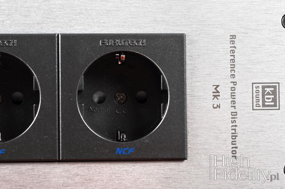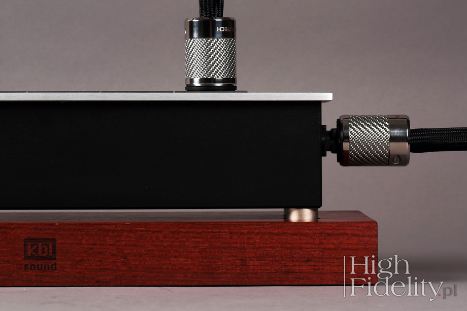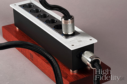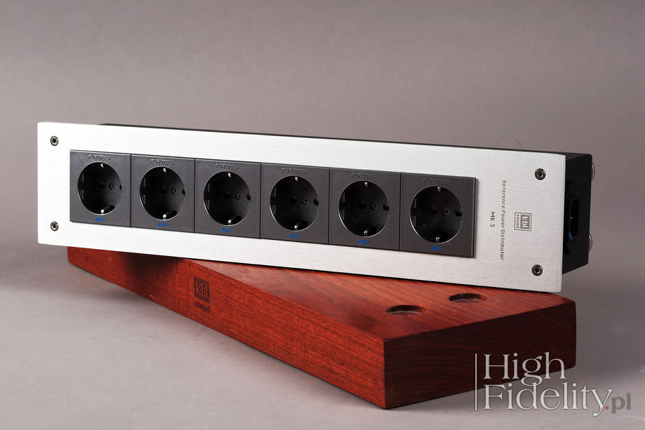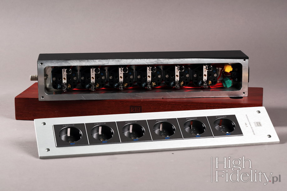 O tym, że wszystkiego mieć nie można pewnie już państwo wiecie, prawda? Jeśli nie, to pomyślcie jeszcze raz, w innym przypadku będziecie co raz czymś zaskakiwani i będziecie wychodzili z odsłuchów rozczarowani. A nie o to chodzi, wystarczy sobie poukładać w głowie pewne rzeczy na nowo, aby dostosować się do nowych warunków. W tym przypadku będzie chodziło o to, że średnica jest z KBL-em bardziej konturowa niż w Acoustic Revive, a jej niska część lżejsza. Można temu łatwo zaradzić, wybierając wersję z gniazdami złoconymi, ale wówczas nie dostaniemy, mam co do tego pewność, tak dobrej rozdzielczości i tak wielu informacji, jak z wersją z gniazdami NCF. Przywołałem płytę Speakin’ My Piece nie bez powodu. To wersja wydana, powtórzmy, przez firmę Audio Wave jako XRCD24. Jeśli macie państwo doświadczenie z tym sposobem przygotowania i wydania krążków Compact Disc, to wiecie że dźwięk z takich płyt jest ciepły, gęsty, często wręcz lejący się, w czym przypominają brzmienie jednowarstwowych płyt SACD. I tak właśnie brzmi moja referencyjna listwa z Japonii. Dźwięk jest z nią spokojniejszy i jakby wolniejszy. Najważniejsza jest w niej rozdzielczość i nasycenie środka pasma. Z kolei polska listwa przypomina płyty SHM-CD. To bardzo dokładne, rozdzielcze granie o dużej muzykalności. Jest znacznie lepsza od Acoustic Revive jeśli chodzi o oddanie rytmu, pulsu muzyki. Konturowość o której wspomniałem, połączona ze znakomitą rozdzielczością skrajów pasm powoduje, że muzyka, każdy jej rodzaj, ma nerw i drive. Przydaje się to zarówno w przypadku jazzu spod znaku Blue Note, jak i elektroniki. Odmiennie traktowany jest przez obydwie listwy dół pasma. Z AR jest bardziej mięsisty i tłusty, z KBL schodzi niżej, ale nie jest tak mocny i energetyczny, szczególnie w wyższym zakresie, na styku ze środkiem pasma. Ale to właśnie polska listwa lepiej różnicuje dynamikę niskiego zakresu i ładniej pokazuje zachodzące tam różnice między płytami. Nie buduje tak dużych źródeł pozornych, tj. nie rozbudowuje brył (body) instrumentów, jak AR, nie nasyca dźwięku w tak mocny sposób, ale – jak mówiłem – to po prostu inna propozycja. Podsumowanie Obydwie listwy zasilające o których była mowa – listwa odniesienia i testowana – są znakomite, bardzo mi się podobają. Polski produkt jest bardziej rozdzielczy i dokładniejszy. Lepiej pokazuje dynamikę i żywszą twarz muzyki. Odpowiedzialne za to są bardziej rozbudowane i przez to lepsze skraje pasma. Z kolei listwa odniesienia ma głębiej wybudowany środek pasma i pokazuje większe plany, mocniejsze, z głębszą sceną. Lepiej buduje też bryły źródeł pozornych o bardziej krwistej naturze. Ale AR z kolei upraszcza – w tym porównaniu – skraje pasma. Pokazała to już niegdyś listwa Verictum Cogitari, która jest jednak tak bardzo odmienna od KBL-a, że łatwo będzie zdecydować, która nam bardziej odpowiada. Biorąc pod uwagę różnicę w cenie między polskim produktem, a japońsko-polskim „systemem”, który posłużył jako produkt odniesienia, przywołując równie kosztowną listwę firmy Verictum, trzeba powiedzieć, że za część tej kwoty dostaniecie dźwięk równie efektowny, a pod wieloma względami topowy – przede wszystkim jeśli chodzi o rozdzielczość, bogactwo i klarowność skrajów pasm. Można zmienić jej charakter zamawiając wersję ze złoconymi stykami, dopalając środek, ocieplając skraje pasma, ale też tracąc to, co czyni tę propozycję wyjątkową. Jak zwykle to oczywiście państwa wybór, który musi być zgodny z tym, czego od systemu oczekujecie i co was kręci. Jaki by jednak nie był, warto wiedzieć, że mowa o listwie zasilającej AC z bardzo wysokiej półki. ![]() Reference Power Distributor Mk3 jest listwą zasilającą AC firmy KBL Sound. Dostępna jest w wersji pięciogniazdkowej (RPD-5) i sześciogniazdkowej (RPD-6). Jest naprawdę ciężka, a to za sprawą korpusu wykonanego z frezowanego bloku aluminium, którego ścianki mają grubość nawet do 35 mm. Lakierowany na czarno korpus przykryty jest od góry aluminiową, anodowaną płytą, na której naniesiono firmowe logotypy. Elementy te mocowane są do ciebie czterema, grubymi wkrętami z imbusowymi łbami. To bardzo dobra, solidna robota, chociaż – podobnie jak w pierwszej wersji – trzeba uważać na ostre, wychodzące poza obrys korpusu, rogi górnej płyty. Listwa stoi na czterech nóżkach wykonanych z brązu fosforowego z warstwą matowego niklu na zewnątrz. Pod spodem mamy bardzo ładny element z grubego drewna, na którego ściance wyfrezowano logotyp KBL-a. Rodzaj drewna został wybrany w serii odsłuchów. Na nóżki wyfrezowane są wgłębienia. Drewno impregnowane jest olejem mającym własności antystatyczne. W wersji przeznaczonej do testu w „High Fidelity”, która jest w ofercie firmy wersją dodatkową, zastosowano gniazda Furutech FT-SDS NCF oraz Furutech Fi-06 NCF. NCF w ich nazwie to skrót od Nano Crystal² Formula. Po pierwsze generuje ona jony ujemne, niwelujące elektryczność statyczną w gnieździe, a po drugie zamienia energię termiczną w fale podczerwone, łatwo wygaszane. Materiał ten został połączony przez Furutecha z nanoceramicznymi drobinami i pudrem węglowym, mającymi właściwości piezoelektryczne. Ich miedziane styki są rodowane, a nie złocone. Są one poddawane obróbce termicznej (kriogenicznej) w procesie nazwanym przez Furutecha Alpha. W celu polepszenia styku pomiędzy kablem a gniazdem Furutech stosuje specjalny, opatentowany rodzaj płytek dociskowych. Maksymalna średnica podłączonych przewodów to ø 5,5 mm.