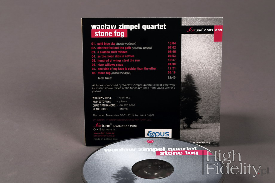 To, jak nagrywa firma FOR TUNE dzisiaj czytelnicy „High Fidelity” zapewne wiedzą i to dobrze, stosunkowo często recenzujemy bowiem jej krążki na naszych łamach. Ciekawe więc było dla mnie wejście w jej dźwiękowy świat z czasów, kiedy jeszcze nie była znana, kiedy nie liczyła się jako jedno z najważniejszych polskich wydawnictw, głównie muzyki jazzowej. To doświadczenie inspirujące, bo dźwięk tego krążka jest wybitny. Późniejsze realizacje For Tune mają czasem podkręconą ciepłotę, gęstość, kosztem ultymatywnej rozdzielczości. Tutaj jest i to, i to. Jest też niesamowicie głęboki ton, bo kiedy uderza fortepian, to ma piękny atak, ale jeszcze lepsze podtrzymanie. Podobnie i wysokie tony – tak dobrze nagranych instrumentów perkusyjnych dawno nie słyszałem. Brzmiały trochę jak z płyty Master CD-R, a nawet SACD. Miały bowiem masę i ciepłą barwę, a były przy tym niesamowicie przejrzyste i namacalne. Pod tym względem płyta Stone Fog przypomina nagrania monachijskiej ECM, co dałoby się łatwo wytłumaczyć inspirowaniem się uznanym wydawnictwem, nie tylko jeśli pomyślimy o okładkach, ale i o dźwięku. Ten jest równie dobry, jak na najlepszych realizacjach Manfreda Eichera, miejscami jeszcze bardziej nasycony i rozdzielczy. Dynamika, szybkość, rozciągnięcie pasma w obydwu kierunkach – są wzorowe.