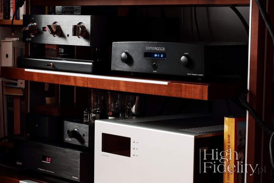 Przejście z dzielonego wzmacniacza odniesienia, kosztującego jakieś, na okrągło, trzydzieści razy więcej niż wzmacniacz Consonance jest gładkie i bezproblemowe. Różnica w klasie jest dramatyczna, a mimo to, po chwili potrzebnej na aklimatyzację, z przyjemnością słucha się ulubionych płyt. A to dlatego, że charakter dźwięku testowanego wzmacniacza jest bardzo dobry. To nieco ciemne granie, ale z mnóstwem szczegółów i dobrą dynamiką w skali makro. Jest tu miejsce zarówno na plan ogólny, tj. rozmach, jak i na szczegół, detal. Chociaż ważniejsze jest to, co wspólne niż to, co osobne.