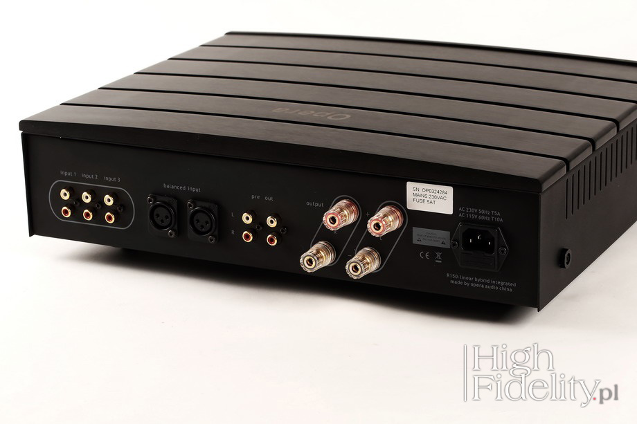 Pierwszym powstałym w ten sposób produktem był wzmacniacz lampowy, mający grać w systemie pana Liu. Ktoś poprosił o następny, potem następny i tak zrodziła się firma Opera Audio z marką Consonance. Obecnie ma w ofercie wiele rodzajów urządzeń, ze wzmacniaczami lampowymi i hybrydowymi, odtwarzaczami CD i plików, gramofony, ramiona gramofonowe, jak również różne wersje modeli podstawowych i ich kolejne generacje. Jak się wydaje, była to pierwsza chińska firma, która zaprojektowała swój własny gramofon. Nowe urządzenia są wprowadzane do sprzedaży stosunkowo często, jednak najbardziej udane pozostają w jej ofercie bardzo długo. Jak Reference 150, wzmacniacz zintegrowany o budowie hybrydowej – lampowo-tranzystorowej – teraz w wersji Mk II. | REFERENCE 150 MkII Jego wersja podstawowa jest na rynku od – o ile dobrze pamiętam, a Google podpowiada – od ponad dobrych dziesięciu lat. To ciężki, niezwykle solidnie zbudowany wzmacniacz o konstrukcji niesymetrycznej o mocy 120 W na kanał, wyposażony w cztery wejścia liniowe, w tym trzy RCA i jedno XLR. Jego obudowa składa się z grubego, stalowego chassis i aluminiowych płyt na froncie i górze, który ma charakterystyczny, zaokrąglony kształt. Zamiast klasycznych wycięć chłodzących radiator z tranzystorami mocy, góra wykonana została z osobnych, szerokich płytek pomiędzy którymi są szczeliny. Dostępne są one w kolorze czarnym, srebrnym lub wykonane z dębowych klepek. Urządzenie ma z przodu średniej wielkości wyświetlacz w kolorze niebieskim na którym odczytamy wybrane wejście i siłę głosu. Obydwa te parametry zmieniamy niewielkimi gałkami. Na osi wzmacniacza jest sporej wielkości, okrągły wyłącznik zasilania, jako żywo przypominający to, co można spotkać we wzmacniaczach norweskiego Hegla. Do kompletu otrzymujemy solidny, aluminiowy pilot zdalnego sterowania w nietypowym, niemal kwadratowym kształcie. To pilot systemowy, którym obsłużymy także odtwarzacz CD tej firmy. Małe guziczki zostały rozmieszczone tak, że operowanie nim nie jest zbyt łatwe. | HYBRYDA HYBRYDA – coś, co składa się z różnych elementów, często do siebie niepasujących; w przypadku zwierząt – mieszaniec; przykładem hybrydy jest syrena – pół człowiek, pół ryba. Słownik wyrazów obcych, Wydawnictwo Naukowe PWN, 2007 W technice chodzi o połączenie z sobą dwóch różnych modułów, zazwyczaj używanych osobno, po to, aby skorzystać z zalet jednego i drugiego. W audio ‘wzmacniaczem hybrydowym’ nazywamy taki, w którym jeden stopień wzmocnienia bazuje na lampach elektronowych, a drugi na półprzewodnikach. Najczęściej spotykaną hybrydyzacją jest połączenie lampowego przedwzmacniacza – często jedynie bufora wejściowego – z tranzystorowym stopniem prądowym. Dla porządku dodajmy, że spotykamy też inne typy hybryd, na przykład z wejściem tranzystorowym i wyjściem lampowym, jak we wzmacniaczach Kronzilla firmy KR Audio, a nawet z lampowym stopniem pośrednim, jak we wzmacniaczu SAGA firmy Siltech. W Reference R150 MkII stopień wejściowy, tj. przedwzmacniacz, zbudowany jest w oparciu o podwójną triodę średniej mocy 6H30, zwaną niegdyś „super-triode”, ze względu na jej doskonałe własności elektryczne. Zaprojektowana w czasach świetności Związku Radzieckiego do pracy w układach radarowych, została wprowadzona do zachodniego audio przez Victora Khomenko, założyciela i konstruktora firmy Balanced Audio Technology w przedwzmacniaczu VK-50. Po jakimś czasie z jej zalet skorzystać mogły inne firmy; przypomnijmy, że pracuje również na wyjściu odtwarzaczy CD Ancient Audio. W testowanym wzmacniaczu parametry lampy są monitorowane przez mikrokontroler. Wzmacniacz wyjściowy korzysta z ośmiu – cztery na kanał – tranzystorów Toshiba. Oddają one 120 watów do 8 Ω, mamy więc do czynienia z bardzo mocnym urządzeniem. Mimo to wzmacniacz jest stosunkowo niewielki, podobnie jak radiator chłodzący tranzystory. Pan Liu osiągnął to przez zastosowanie tzw. „zimnej” klasy A („COOL Class A”). To odmiana „pływającej” klasy A, opracowanej pierwotnie przez tę firmę dla wzmacniacza Calaf. Prąd podkładu jest w niej zmieniany dynamicznie w zależności od natężenia sygnału wejściowego. Moc, wytracana w postaci ciepła, jest w tego typu konstrukcjach znacznie niższa niż we wzmacniaczach pracujących w klasie A. Z kolei liniowość pracy tranzystorów jest wyższa niż podczas pracy w klasie AB. Powtórzmy – to bardzo solidnie urządzenie, zaprojektowane z sercem, mające w zamyśle łączyć dwa światy – lampy i tranzystory. Trzeba oczywiście wiedzieć, że dzieli ono także słabości obydwu tych światów, ale to zawsze konstruktor decyduje o rozkładzie kompromisów. Warto wspomnieć, że urządzenia Opera Audio Consonance powstają według nieco innego schematu niż większość innych produktów audio. Firma regularnie urządza tzw. „muzyczne noce” w czasie których najlepsi klienci, ich przyjaciele i szefowie lokalnych firm są zapraszani do lokalnej, włoskiej – to chyba jasne :) – restauracji z muzyką graną na żywo przez znanych muzyków, w czasie której rozmawia się o nowych produktach, muzyce itp. ![]() Płyty użyte do odsłuchu (wybór):