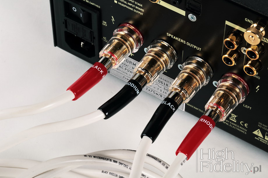 Nazwa Black Rhodium, czyli „czarny rod”, jest więc nazwą znaczącą: mówi o materiale wybranym przez pana Nalty’ego do pokrywania końcówek swoich kabli. Pamiętają państwo porównanie wtyczek kabli zasilających AC, jakie przeprowadzili członkowie Plichtowskiego Towarzystwa Sonicznego? Przypomnę, że jego członkowie zainteresowani byli wpływem na dźwięk metalu, jakim pokrywane są styki kabli zasilających. Myślą państwo, że to nie ma większego znaczenia? Proszę przeczytać reportaż, a potem zamówić u znajomego sprzedawcy podobny odsłuch, a z osłupienia będziecie wychodzili co najmniej kilka dni (więcej TUTAJ).