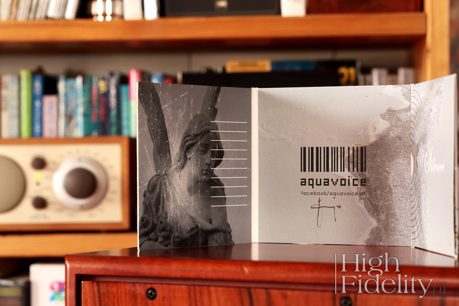Silence okładką nawiązuje do tytułu poprzedniej premierowego wydawnictwa Aquavoice, płyty Nocturne z 2014 roku. Jak już wiemy z wywiadu z Tadeuszem, jest nawet chyba bardziej zwrócona ku nieskończoności. Jest próbą zmierzenia się ze swoimi słabościami i lękami, a mimo to okazuje się, w moim przekonaniu, najbardziej „otwartą” na świat płytą tego artysty. Jak gdyby jednak się pogodził z tym, że „jest, jak jest” i otworzył na kolejny dzień. I kolejny. I jeszcze kolejny. Grafiką zajął się sam Tadeusz. Płyta trwa nieco ponad 40 minut, to dobry format, i złożyło się na nią trzynaście kompozycji. Mają one swoje tytuły, ale – o czym muzyk mówił w wywiadzie – nie przywiązywałbym do nich szczególnego znaczenia, ponieważ wynikają raczej z wymogów „technicznych” niż artystycznych. Wszystkie zostały napisane, zaaranżowane i nagrane w domowym studiu przez Tadeusza. Masteringiem zajął się w swoim warszawskim studiu pan Marcin Bociński, ten sam, który „ogarniał” wcześniejsze płyty Aquavoice. Pracował na plikach 16/44,1. Płyta została wydana w formie rozkładanego mini LP, bez książeczki, ale w formacie „europejskim”, a nie „japońskim”, ponieważ ma wymiary 130 x 125 mm, a nie 136 x 136 mm – jest wielkości książeczki w pudełku typu jewel case (tzw. plastiku”). DŹWIĘK Ponieważ spotkaliśmy się z Tadeuszem u mnie w domu, wykorzystałem to do wspólnego odsłuchu jego nowego albumu. Część odsłuchowa została więc podzielona na dwie części: wypowiedź Tadeusza i moją recenzję. Razem WOJCIECH PACUŁA: Od razu powiem, że jestem pod wielkim wrażeniem produkcji tej płyty. Ale też słyszę bogactwo barwy i bas, który buduje wszystko ponad sobą i zadaję sobie pytanie – jak to możliwe? Przecież tego basu nie słyszałeś, nie słyszałeś tych rzeczy w przeciwfazie! A sam je przecież nagrałeś :) I teraz po raz drugi przeżywam coś takiego, co jest tym bardziej surrealistyczne, że przecież sam te dźwięki nagrywałem :) Chodzi oczywiście o rzeczy z tyłu – to, co z przodu oczywiście znam i słyszałem też u siebie. Barwa też się różni, ale to wciąż te same utwory. Ale to, co się dzieje w tle usłyszałem tutaj po raz pierwszy. Nie wiem, jak to się dzieje, składam to chyba podświadomie, żeby całość była z sobą „zgodna”, nawet jeśli czegoś nie słyszę. Okazuje się, że to rzeczywiście z sobą „gra”.