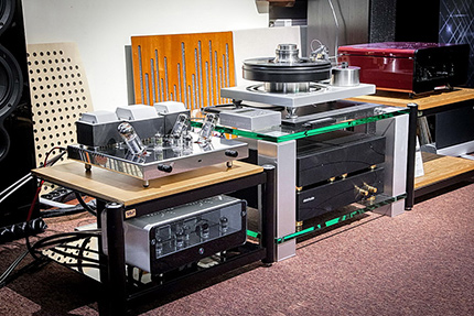 Przedwzmacniacz i wzmacniacz zintegrowany EGG-SHELL stanowiące system prezentacyjny podczas premierowego pokazu gramofonu Mag-Lev w warszawskim salonie płytowym Winylowa (kolumny głośnikowe: Ciarry). W styczniu 2016 roku niemiecki magazyn „Stereoplay” zrobił test porównawczy trzech wzmacniaczy lampowych: Opera Consonance Cyber 10, Pathos Inpol Remix (de facto wzmacniacz hybrydowy) oraz EGG-SHELL Prestige 12WKT. I co się okazało? Patrząc na wykresy oraz zmierzone parametry nasz wzmacniacz nie brylował. Punkty za tzw. „odczyty”, czyli pomiary różnych parametrów, wzmacniacze otrzymały następujące (na 10 możliwych): Consequence – 4, Pathos – 6, EGG-SHELL – 4. Tymczasem w podsumowaniu w ocenie punktowej brzmienia (niemieckie „klang”) otrzymaliśmy 56 punktów na 70 możliwych. Consequence i Pathos dostały odpowiednio 52 i 58. Otrzymaliśmy zatem zaledwie 2 punkty mniej niż Pathos, który w tamtym czasie kosztował 5000 euro (1400 euro więcej niż nasz) i 4 punkty więcej niż Consequence, choć w tym ostatnim przypadku wynik za zmierzone parametry był ten sam – 4 punkty. O jeden więcej od Pathosa zdobyliśmy za „wartościowość”– 9/10 i o jeden mniej za praktyczność – 7/10. Magazyn zsumował punkty i wyszło, że Pathos zwyciężył czterema oczkami (w tym te dwa „na papierku”) na 100 możliwych. Niech każdy sobie odpowie sam na pytanie, jaka jest korelacja między wynikami pomiarów, a dźwiękiem oraz czy ich mierzenie i na tej podstawie ocenianie urządzenia ma sens. Test jest dostępny na naszej stronie TUTAJ. W swoim przeboju Kazik śpiewał: „‘Jak powstają twoje teksty?’ – gdy mnie ktoś tak spyta, zakurwię z laczka i poprawię z kopyta”. Chyba coś podobnego odczuwamy, gdy rozmowa o wzmacniaczu zaczyna się od pytania do nas o pasmo przenoszenia albo poziom zniekształceń.
