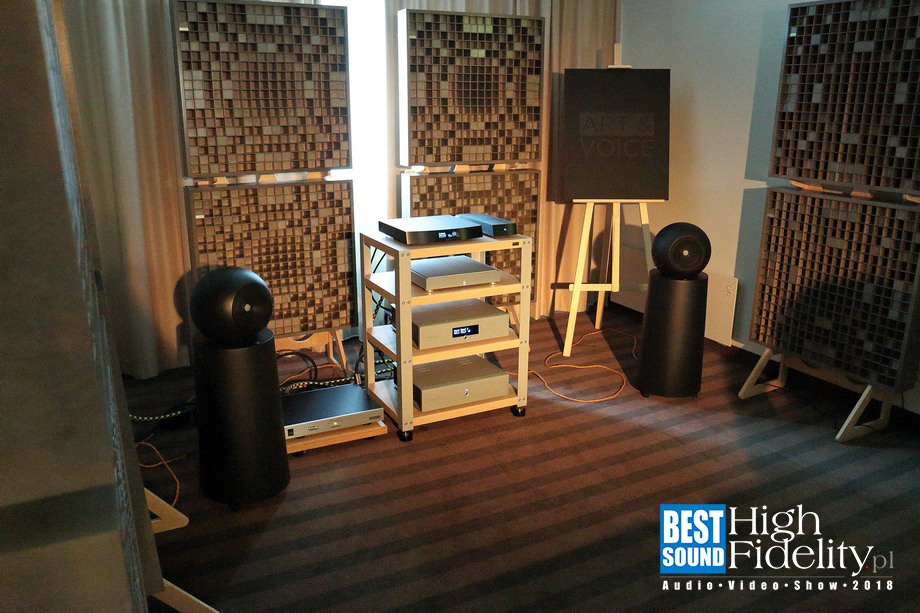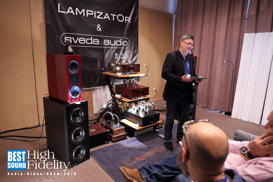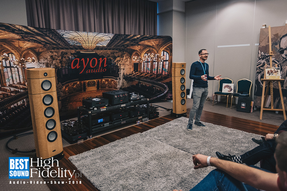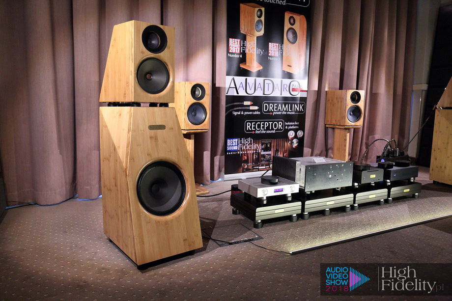 Tym bardziej, że miałem możliwość wręczyć nagrodę Best Sound 2018 Tomkowi Pauszkowi za jego płytę Lo-Fi Lo-Ve. Zmasterowana przez Przemka Rudzia jest przykładem na to, jak dobrze można współcześnie nagrać muzykę elektroniczną. Wykorzystałem też obecność artysty, aby wręczył on kolejną płytę Master Gold CD-R, właśnie z jego twórczością, szczęśliwcowi, który poprawnie odpowiedział na przygotowane przeze mnie pytanie. Kilku czytelników prosiło o podanie tytułów płyt, których słuchaliśmy – zamieszczamy je więc poniżej: Sveda/LampizatOr | Hotel Tulip w którym się w niedzielę znalazłem, jest niewielki, ma tylko kilka sal, jednak skupia, jak w soczewce, wszystko, co w tej wystawie najciekawszego i pokazuje najważniejsze trendy. Obok opartego na elektronice lampowej systemu Ayon Audio, gdzie mieliśmy odtwarzacz SACD CD-35 High Fidelity Edition oraz unikatowy (tylko 5 sztuk rocznie!) przedwzmacniacz Conquistador, w tym samym hotelu można było posłuchać też systemu łączącego lampy i technikę studyjną. Źródłem sygnału był w nim Superkomputer firmy LampizatOr oraz najnowszy DAC Pacific. Elektronika pana Fikusa sterowała bezpośrednio aktywnymi kolumnami Sveda Audio Blip w wersji U22 (stoją w tym studio). A Sveda to marka, z której kolumn korzystają tacy ludzie, jak na przykład Leszek Kamiński, a z zespołów – przykładowo – Hey i T.Love. Blip jest wersją „domową”, to znaczy z ładniejszym wykończeniem, lepszymi komponentami i podzespołami. Dźwięk był, w swojej estetyce, fantastyczny. To mocne granie „do przodu”, niezwykle rozdzielcze i dynamiczne, ale zachowujące muzykalność. Powiem więc krótko: umówiliśmy się, że w przyszłym roku, na 15-lecie „High Fidelity” powstanie specjalna wersja tych kolumn, które zestroimy u mnie w domu pod kątem moich potrzeb i upodobań. Avatar Audio | Na drugim końcu korytarza mogliśmy posłuchać systemu ekstremalnie odmiennego, jak z drugiego końca galaktyki – systemu Avatar Audio. Pan Andrejczuk pokazał nową generację kolumn Holophony Numer Dwa. Jak mówi, to wynik ośmiu lat poszukiwań, niezliczonych godzin spędzonych na żmudnym strojeniu i delikatnych poprawkach. Obudowa nowej wersji wykonana jest z bambusa – doskonałego materiału, przy tym niezwykle ekologicznego. Ta drzewiasta trawa ma właściwości wspólne twardemu i miękkiemu drewnu, a przy tym świetnie wygląda.