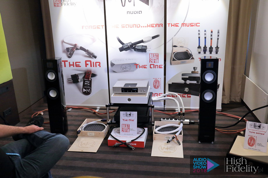 - Kolejna prezentacja zaprzyjaźnionej firmy – Wk Audio, z fantastycznymi kablami zasilającymi oraz platformami antywibracyjnymi. System szczególnie pięknie pokazywał wokale.