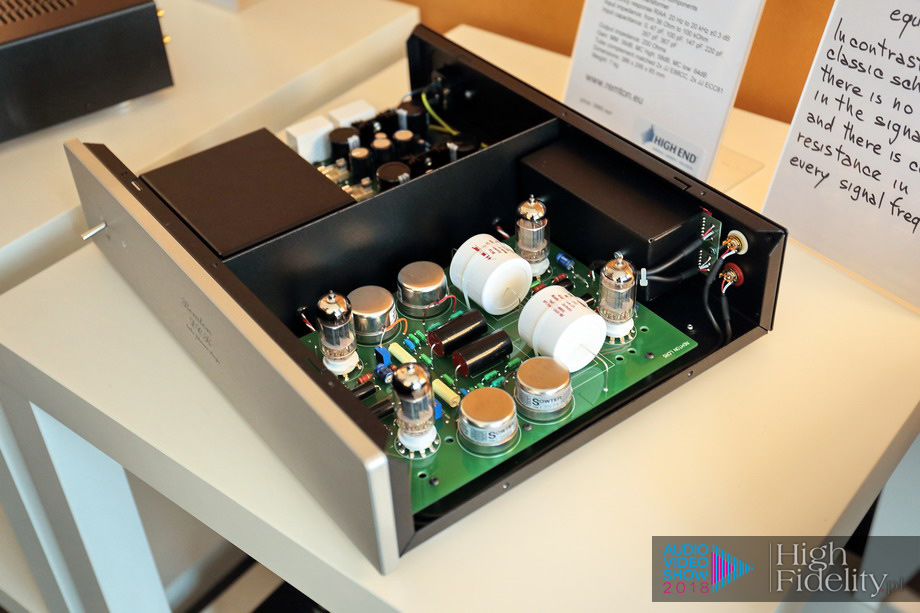 - Ładny, nawiązujący do włoskich rozwiązań stylistycznych, polski wzmacniacz Audio Revea First na lampach KT88, pracujących w trybie triodowym w klasie A SE.
