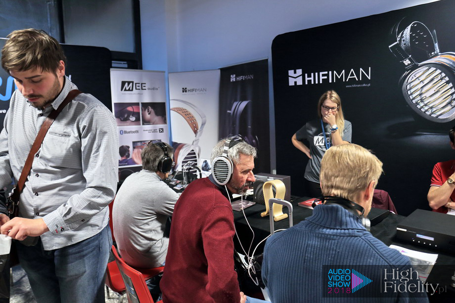 - Strefa słuchawek, z systemami HiFiMAN – pośrodku nowa wersja modelu HE-1000.