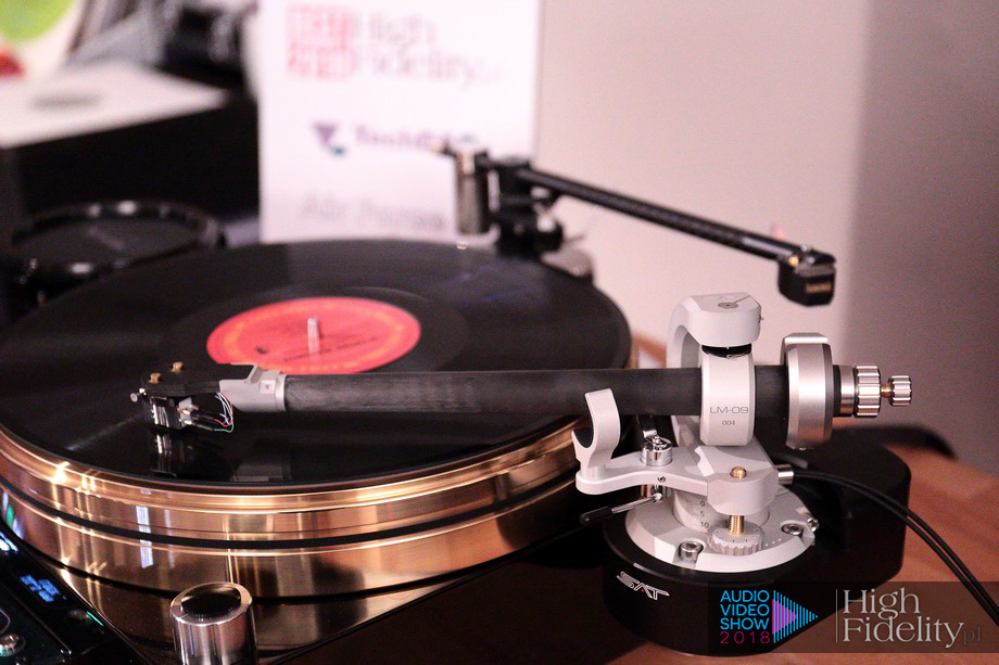 - Wciąż w pokoju RCM, dystrybutora TechDAS-a. Na zdjęciu jedno z najdroższych ramion gramofonowych świata, szwedzki SAT (Swedish Analog Technologies) LM-09 za 25 000 USD.