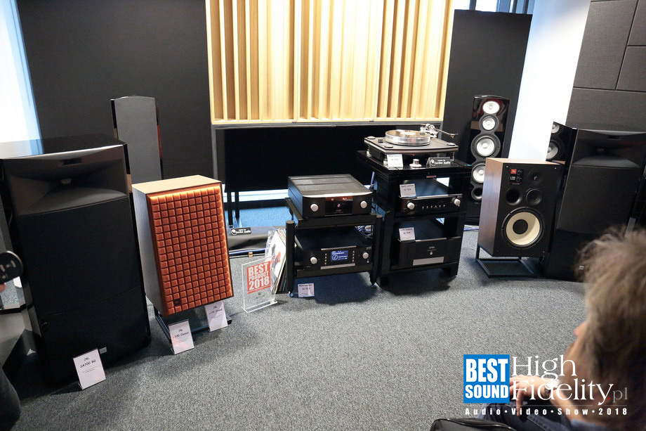Karl Heinz Fink Ultra | Wróćmy na Stadion. To ogromna powierzchnia i wiele ciekawych systemów, w tym ultrahigh-endowych. A wśród nich, na przykład, referencyjny system niemieckiej firmy MBL. W skład systemu wchodziły omnipolarne kolumny Radialstrahler mbl 101 X-treme, składające się z czterech modułów (po dwa na kanał), cztery monofoniczne wzmacniacze mocy 9011, przedwzmacniacz 6010D oraz dzielony odtwarzacz Compact Disc 1611F/1621. To była spektakularna prezentacja, ponieważ dźwięk był niewiarygodnie otwarty i dynamiczny. Jeszcze droższy system przygotowała firma Audiofast, polski dystrybutor firm Wilson Audio, dCS i Dan D’Agostino. Magnesem, który przyciągał odwiedzających była oczywiście cena – 3 000 000 za cały system – obecność w piątek Jarre’a, ale i pierwszy raz w Polsce prezentowane wzmacniacze mocy, monobloki Dan D’Agostino Relentless. Ich wygląd definiuje zielone oko cyklopa i waga (250 kg), a odbiór cena (1,2 mln zł). Trzeba jednak powiedzieć, że to nie była sztuka dla sztuki, ponieważ dźwięk był rasowy, nawet jak na warunki wystawowe. I jeszcze kilka słów o systemie, w którym podstawą były kolumny Coltrane 3 firmy Marten. Zresztą może to wcale nie one były podstawą – bo przecież magnesem, który przyciągał ludzi była elektronika firmy Engström & Engström, przede wszystkim monofoniczne końcówki mocy zaprojektowane przez Larsa Engströma. Źródłem sygnału był gramofon Brinkmann Balance z limitowanej serii Anniversary. Grało to świetnie, bo gęsto i rozdzielczo. Cena systemu? – Blisko 2 000 000 złotych. I nie tylko | Nie trzeba było jednak aż tak dużych pieniędzy, aby usłyszeć co wyjątkowego. Wciąż kosztowny, ale nie aż tak, był system oparty o kolumny JBL L100 Classic. To było gęste, mocne, dynamiczne brzmienie o dobrym balansie tonalnym. Dzięki obecności słuchaczy mogłem uroczyście wręczyć polskiemu przedstawicielowi firmy, Sebastianowi Czubale statuetkę Nagrody Roku 2018, właśnie dla tych kolumn.