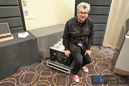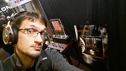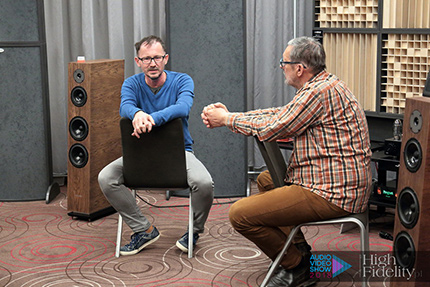- I samo spotkanie, w pokoju Fezz Audio i Pylon Audio – na pierwszym planie Wojtek Padjas, dziennikarz RMF Classic.
