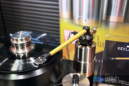 Jeszcze taniej, ale równie obiecująco, grały nowe kolumny firmy Audiovector, model QR5, które w Warszawie miały swoją premierę. To najwyższy model tej linii, przynoszący wszystkie rozwiązania z mniejszych kolumn, ale w lepszej wersji. Mamy więc głośnik wysokotonowy typu AMT ze złoconą siateczką, działającą jak tłumik syczących sybilantów – rozwiązanie to firma nazwała S-Stop – a także nowe, kanapkowe membrany głośników nisko-średniotonowych wykonane z aluminium i rdzenia z pianki. Dodajmy, że to była światowa premiera QR5. Chociaż to hotel Sobieski był oazą polskości, także Stadion gościł kilka systemów z polskim DNA. W jednym z nich można było zobaczyć pierwsze w historii firmy J. Sikora ramię gramofonowe o nazwie Kevlar 12” (i wszystko jasne :). Pan Sikora mówił, że jego wyjątkowość polega na materiale rurki – to (prawdopodobnie) pierwsze ramię na świecie wykonane z Kevlaru. Taśma o najniższym możliwym splocie owinięta jest wokół, tworzącej rdzeń, pianki Rohacell. Okablowanie dostarczyła firma Albedo. W systemie grały również gramofon J. Sikora, elektronika tej firmy oraz kolumny Symphony firmy hORNS. Można było również dostrzec topowy kondycjoner Gigawatt.