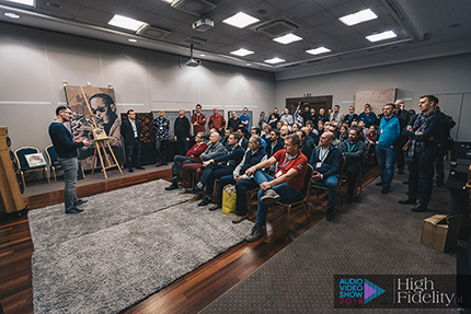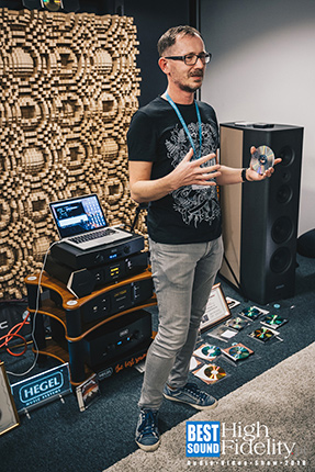 Może właśnie dlatego nagrania DSD256 są takim objawieniem? Bo, trzeba wiedzieć, są w charakterze zbliżone do płyt CD ze złotym podkładem. Co by jednak nie było, po porównaniu wersji Hard Glass Master CD-R z plikiem Master DSD256 stwierdziliśmy zgodnie, że lepiej zagrała płyta CD, a nie plik źródłowy. Dlaczego? – Przyczyn jest kilka, a zacząć można od tego, że plik wysyłany był z laptopa (z Roonem) przez kabel USB, że wciąż nie wiemy, jak się z takim sygnałem obchodzić, a technika CD jest przećwiczona na wszystkie strony, a może po prostu ulegliśmy magii „szkła”. Widać jednak, że warto trzymać się systemu Compact Disc, że warto inwestować w lepsze wersje tłoczeń krążków oraz że przed plikami jeszcze kilka gór do zdobycia. Dodam jeszcze, że na koniec urządziłem krótki, improwizowany konkurs, w którym można było wygrać płytę Master Gold CD-R Aquavoice Silence. Gratuluję zwycięzcy! | NIEDZIELA Warsztaty | Niedzielę rozpoczęły warsztaty, na które zawsze czekam z niecierpliwością, w sali firmy Nautilus. Prowadzę je zawsze wraz z Gerhardem Hirtem, naszym przyjacielem z Ayon Audio, jednak co roku przygotowuję inny temat. Tym razem spotkanie było tylko jedno, wcześnie rano, a to dlatego, że organizator chciał uniknąć problemów z zeszłego roku, kiedy to o wejściówki wybuchały sprzeczki, a nieraz dochodziło do rękoczynów. Założył, że wczesna godzina, w dodatku w niedzielę, przyciągnie tylko tych, którzy naprawdę chcą się tam znaleźć. I tak było.