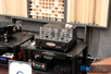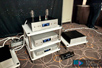 - W głębi wspomniane Origami – wersja zintegrowana i dzielona (z wydzielonym modułem selektora wejść), a na pierwszym planie ich konstruktor, Wiktor Krzak, co jakiś czas uczestniczący w spotkaniach Krakowskiego Towarzystwa Sonicznego.
