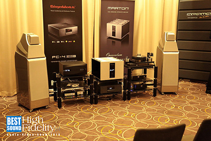 - Jeden z najdroższych systemów na wystawie, kosztujący kilka milionów złotych system MBL z kolumnami omnipolarnymi Radialstrahler mbl 101 X-treme.