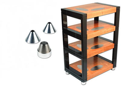 Platforma Finite Elemente Pagode Edition HD-09 z nóżkami Cerabase Compact i Resonatorem 1000 Hz – dzięki zdjęciu górnej półki ładnie widać jej konstrukcję (HF | No. 111) Platformy stałe oferują obydwie przywołane firmy, jak również japoński Acoustic Revive, polskie firmy Rogoz Audio, Divine Acoustics, Franc Audio Accessories i inni. Z kolei „pływające”, już wspomniany, Acoustic Revive (pneumatyczne), Pro Audio Bono (na autorskim systemie linkowym), Avatar Audio, Tewo Audio, Townsend Audio i Stacore (referencyjne zastosowanie odsprzęgnięcia kulowego). Platformą „pływającą” jest – choć na pierwszy rzut oka tego nie widać, model Pure firmy WK Audio. |
