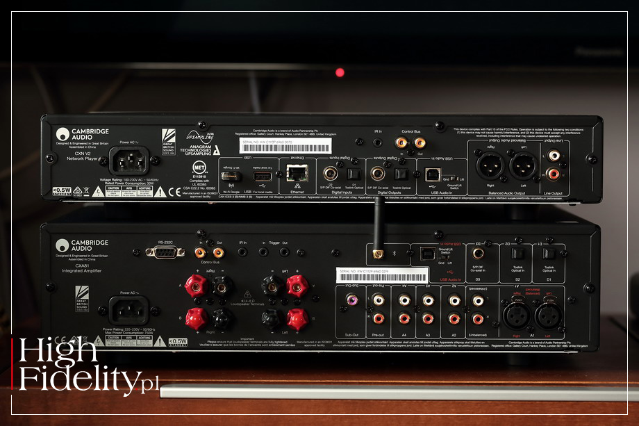 Ale też cztery lata w elektronice użytkowej to niemal wieczność. Kilkanaście lat temu, kiedy audio wciąż jeszcze się liczyło w budżetach dużych koncernów, nowe modele trafiały na rynek każdego roku. Przeprojektowane ścianki przednie, dodanie lub ujęcie wejść i manipulatorów – to były najczęstsze zmiany. Prawdziwe modyfikacje zdarzały się znacznie, znacznie rzadziej. Z tego punktu widzenia te cztery lata dzielące inaugurację serii CX oraz CX Series 2 (firma stosuje także zapis CX 2) wydają się więc dobrze wyważone. Tym bardziej, że w międzyczasie, bo na początku 2018 roku, poprawiono specyfikację odtwarzacza plików (streamera) CXN, który otrzymał nazwę CXN V2. Ale to normalne, technika cyfrowa zmienia się z dnia na dzień. Serię CX Series 2 Cambridge Audio zapowiedziała 5 września 2019 roku: Firma Cambridge Audio zaprezentowała dziś CX Series 2, poważną aktualizację swojej oferty komponentów hi-fi z serii CX. Seria CX Series 2 będzie dostępna od października 2019 r. | CXN (V2) 2 Oprócz dwóch, wspomnianych powyżej, wzmacniaczy zintegrowanych, w nowej serii znalazł się także poprawiony odtwarzacz plików CXN, już w trzeciej wersji. Wszystkie produkty Cambridge Audio dostępne są teraz tylko w jednym kolorze, Lunar Grey (Księżycowa Szarość), tak wygląda więc i CXN (V2) 2. Jest jeszcze jedna cecha wspólna – z przodu nie mamy klasycznych nóżek, ponieważ część dolnej ścianki jest obniżona i to na niej urządzenie się opiera. Chociaż nie jest to może najbardziej audiofilskie rozwiązanie, to wygląda bardzo ładnie. StreamMagic | Odtwarzacz bazuje na platformie StreamMagic, opracowanej przez Cambridge w 2011 roku (StreamMagic Streaming Platform). To jedna z nielicznych firm, która ma swoją własną platformę streamingową. Specjalnie dla tego projektu zatrudniono wówczas w firmie kilku inżynierów, specjalizujących się w obróbce sygnałów cyfrowych. Od tamtej pory dział rozrósł się do kilkudziesięciu osób i to tam bije obecnie „serce” firmy. Posiadanie swojej własnej platformy, w dodatku stale ulepszanej, dało Cambridge’owi przewagę nad konkurentami. Ale to przewaga wykorzystana przez firmę w sposób odmienny od tego, co dzieje się na rynku. Nie ściga się bowiem na parametry odtwarzanych plików. Zawsze była więc z tyłu za innymi firmami. Rozmawiałem o tym z ludźmi Cambridge’a kilkakrotnie i za każdym razem pytałem: „dlaczego?”. Za każdym razem otrzymywałem tę samą odpowiedź: „chodzi nam o jak największą stabilność streamingu, a nie o niestabilne odtwarzanie wszystkiego, co do odtwarzacza wrzucimy”. Ocena tego podejścia należy do państwa, ale – jak dla mnie – ma to sens. Pliki | CXN (V2) 2 jest więc odtwarzaczem plików z szeregiem wejść cyfrowych. Można w nim także uruchomić tryb przedwzmacniacza – siła głosu będzie wówczas regulowana cyfrowo. Ścieżka sygnału jest w nim prowadzona od początku do końca w formie zbalansowanej, warto więc wypróbować wyjścia XLR. Urządzenie odtwarza wszystkie popularne typy plików nieskompresowanych czyli WAV, FLAC, AIFF i ALAC, wszystkie do 24 bitów i 192 kHz. Odtwarza również pliki skompresowane, jak: mp3, Windows Media Audio (WMA 9 Standard), AAC, HE AAC, AAC+, a także OGG Vorbis 32. Oprócz tego odtworzymy również pliki – przez wejście USB aż do DSD256, a z zewnętrznego dysku twardego lub pendrajwa DSD64. Nie odtworzy natomiast plików PCM powyżej 192 kHz, nie zdekoduje również plików MQA, dostępnych w serwisie streamingowym Tidal. Firma tłumaczyła to dotychczas w ten sposób: Obecnie nie planujemy integracji obsługi MQA z żadnym z naszych obecnych produktów, ponieważ wymagałoby to modyfikacji sprzętowej w celu zainstalowania dekodera Full MQA. Ponieważ pliki MQA są pakowane w dowolnym bezstratnym kontenerze, takim jak FLAC, WAV lub Apple Lossless, umożliwia to ich odtwarzanie z komputera PC lub Mac za pośrednictwem połączenia USB Audio z odtwarzaczem sieciowym Cambridge Audio, nawet jeśli dekoder MQA nie jest do niego wbudowany. […] Chociaż nie możemy zagwarantować, że dekodery lub rendery MQA zostaną wdrożone w przyszłych produktach, rozważamy taką możliwość. Jak się okazuje – to już przeszłość. Chociaż na stronie internetowej wciąż znajdziemy ten komunikat, to już wiadomo, że moduł, który znalazł się w CNC (V2) 2 jest inny niż w starszym odtwarzaczu. Dzięki temu w drugim kwartale 2020 roku dostępna będzie nowa wersja oprogramowania, z pełnym dekodowaniem MQA! Odtwarzacz | Urządzenie jest pełnoprawnym odtwarzaczem plików, który może być również centrum cyfrowym całego systemu. Pliki możemy odtwarzać z NAS-a, z lokalnego dysku USB lub pendrajwa, a także z serwisów streamingowych Spotify i Tidal. To urządzenie wyposażone w ChromeCast, czyli aplikację pozwalającą na łatwe przesyłanie sygnału z urządzeń przenośnych. CXN (V2) 2 może być połączony z lokalną siecią za pomocą kabla ethernetowego lub przez Wi-Fi. Aby uruchomić to ostatnie do jednego z wejść USB należy podłączyć odbiornik (tzw. „dongle”). DAC | Odtwarzacz może pracować też jako DAC. Oferuje bowiem trzy wejścia cyfrowe: optyczne TOSlink, elektryczne RCA, a także USB. Wszystkie przyjmują sygnał PCM do 24/192. Szczególnie ciekawe jest wejście USB. Może ono pracować w dwóch trybach Audio 1 i Audio 2. W tym pierwszym nie jest do niego potrzebny żaden sterownik, wystarczy podłączyć kabel do komputera i gotowe. Jeśli jednak mamy takie umiejętności, to można zainstalować odpowiedni sterownik (można go ściągnąć ze strony internetowej producenta) i przesyłać sygnał wyższej jakości. Co więcej, wejście to wyposażone jest w przełącznik, którym – w razie potrzeby – możemy odłączyć jego masę od masy całego odtwarzacza. Co ważne, wszystkie sygnały, zarówno PCM, jak i DSD, są upsamplowane do PCM 24/38