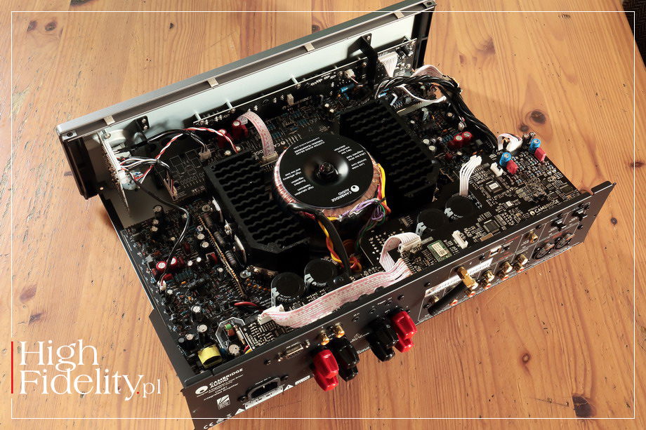 A z drugiej strony to przekaz oparty na mocnym, treściwym brzmieniu. Jest z nim tak, że jego powierzchnia jest gładka i nieco ciepła, ale ogólnie jest energetyczny. To „podkręcenie” słuchać przede wszystkim na basie, który jest mocny, wypełniony, choć nie do końca kontrolowany. Nadaje on wydarzeniom rozmachu, podkreśla ich „ważność”. Ma nieco miękki charakter, dzięki czemu (a nie „przez co!”) przekaz nie jest natarczywy. Druga strona pasma jest chyba jeszcze ciekawsza. To otwarte brzmienie. Puszczamy którąś z mocno skompresowanych płyt, albo po prostu jaśniejszą – jak, niestety, Africa Speaks Santany, a wiemy, że coś jest tam mocniejsze. Zarazem jednak nie jest to podkreślane. Góra pasma jest wygładzona i „złota”, mimo że jest jej sporo. Mamy więc otwarty dźwięk, ale i nieco ciepły. Płyty słabiej nagrane zabrzmią więc całkiem sensownie, a te lepsze po prostu znakomicie. CXA81 | Wszystkie te rzeczy słychać było nie tylko w systemie referencyjnym „High Fidelity”, ale również ze wzmacniaczem CXA81, co dobrze świadczy o jego przezroczystości na sygnał. To zresztą podobny pomysł na dźwięk – można się było tego spodziewać, ale dopiero ten test pokazał, że brzmienie o którym pisałem przy okazji odtwarzacza nie jest przypadkiem, a zostało wybrane z rozmysłem. To granie z rozmachem, energią, którą wzmacniacz nasyca kolumny i pokój odsłuchowy. To także wygładzone, płynne granie, co świetnie pokazała nowa EP-ka zespołu Riverside z materiałem akustycznym, a zaraz potem najnowsza, pośmiertna płyta Leonarda Cohena pt. Thanks for the Dance. Nie było w tym graniu zadziorów, jaskrawości, krzykliwość była tylko przykrym wspomnieniem, jak z innego życia. Głos Cohena jest na tej płycie pokazany wyjątkowo dobrze, jakby został nagrany przez inną ekipę niż, dla przykładu, Popular Problems. To właściwie melorecytacja, a nie śpiew, co wzmacniacz Cambridge’a doskonale pokazał. Nieco też dociążył całość, co słyszałem już wcześniej, słuchając Dido i Miley Cyrus. To wzmacniacz, który idzie w kierunku ekspresji – nie przez rozjaśnienie, a przez dopalenie części basu i „energetyzację” góry. Jest więc rozmach, jest gęstość, jest „drajw”. Brzmienie wzmacniacza różni się jednak w pewnej mierze od tego, co pokazał wcześniej odtwarzacz. Jest bardziej konturowe. Środek pasma nie jest tu już aż tak ważny, jak w samym odtwarzaczu. Dlatego tak fajnie wypadło ich połączenie. CXN (V2) 2 dopełnia bowiem grę CXA81, wypełniając środek pasma. Wzmacniaczowi właściwie nic w tej mierze nie brakuje, ale jakoś lepiej mi się słuchało go w komplecie ze streamerem. Sam wzmacniacz podkreśla nieco bas i trochę górę, ale głównie przez twardszy atak, a nie przez ich ilość. Z dobrze dobranymi kolumnami dostaniemy więc ładny, bo gładki i nieco ciepły, dźwięk, ale też taki, w którym kipi emocjami, gdzie pod „pokrywką” buzuje. Wzmacniacz jest wystarczająco mocny, aby napędzić kolumny do wysokich poziomów. Trzymałbym się jednak średnich poziomów ciśnienia akustycznego, ponieważ wtedy gra najładniej, w najbardziej wciągający sposób. I jeszcze słowo o wejściach cyfrowych wzmacniacza, czyli o przetworniku D/A, który w nim zamontowano. Nie jest on tak dobry, jak ten w odtwarzaczu, nie ma się co łudzić. Dźwięk jest z nim bliżej nas, wybrzmienia są skracane, a całość brzmi w nieco bardziej „plastikowy” sposób. Z drugiej jednak strony dźwięk jest gładki i dobrze wyrównany tonalnie. Nie jest też zbyt rozdzielczy, ale nie ma co kręcić nosem. Z TV, konsolą itp. to będzie bardzo dobre uzupełnienie systemu. | PODSUMOWANIE Nowe urządzenia Cambridge Audio są, moim zdaniem, znacznie ładniejsze niż poprzednie. Zmiany mogą się wydawać kosmetyczne, ale razem „robią różnicę”. Grają równie fajnie, bo energetycznie, ale i gładko, dynamicznie, ale i przyjemnie. Wysokie tony są nieco słodkie i „złote”, a dół mocny, lekko przeciągnięty, ale bez dudnienia. To on daje największą frajdę, bo jest przy tym energetyczny, co daje utworom bardzo dobry rytm. Z tych dwóch komponentów to odtwarzacz jest gwiazdą. Wzmacniacz jest klasycznym urządzeniem tego producenta, z wyrównanym pasmem przenoszenia, dobrą przestrzenią i sensowną rozdzielczością – to rzetelny wzmacniacz. Z kolei odtwarzacz jest znakomity i sprawdzi się także w znacznie droższych systemach. ![]() | CXN (V2) 2 Odtwarzacz ma niski profil i oparty jest w trzech miejscach – płaskim elemencie z przodu i dwóch nóżkach z tyłu. Jego front wykonano z aluminium, a pozostałe elementy z giętej blachy stalowej. Środek | Elektronikę rozmieszczono na kilku płytkach drukowanych, z których najważniejsze są dwie: z zasilaczem impulsowym i z odtwarzaczem. A właściwie z przetwornikiem cyfrowo-analogowym, bo odtwarzacz to mała płytka wpięta do głównej. I teraz – to „StreamMagic Streaming Module” o której mówiłem w wersji o nazwie Black Marlin – płytka, którą Cambridge stosuje również w topowym odtwarzaczu Edge! Płytka przetwornika jest wyjątkowo rozbudowana. Na wejściu USB pracuje układ XMOS, a przy pozostałych odbiornik cyfrowy Cirrus Logic8416-CZZ. Obok nich umieszczono ładny zegar sterujący. Po wybraniu źródła sygnału jest on kierowany do dużego układu DSP Analog Devices. To w nim zapisano algorytm upsamplera – wszystkie sygnały są automatycznie zamieniane na PCM 24/386. Dodajmy, że algorytm został napisany przez szwajcarską firmę Anagram Technologies, z którą Cambridge współpracuje od lat.