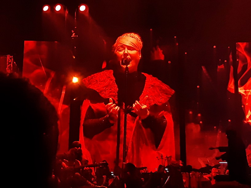 Również soliści wypadli przekonywająco, ze szczególnym wskazaniem na wenezuelskiego flecistę Pedro Eustache’a, którego znamy z wielu soundtracków Zimmermana, na przykład do filmu Piraci z Karaibów. Gwiazdą wieczoru była jednak ONA – Lisa Gerrard. Bliska przyjaciółka kompozytora, o której opowiadał z ekranu niemal z uwielbieniem, współkompozytorka ścieżki muzycznej do, już wspomnianego, Gladiatora, połowa duetu Dad Can Dance, była genialna. Jej wokal nagłośniono w podobny sposób, jak orkiestrę, czyli ciemno, z głębią i pełnią.