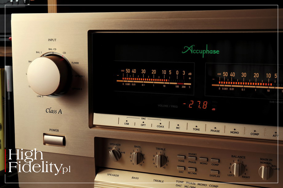W swojej historii Accuphase próbował różnych technik i rozwiązań, szukając tego jednego, jedynego dźwięku, który byłby dźwiękiem jak najbliższym rzeczywistości. Stosował więc we wzmacniaczach tranzystory bipolarne i tranzystory polowe, transformatory zasilające z kształtkami EI i toroidalne, korzystał z oporowych tłumików i – jak teraz – z układów elektronicznych, w których oporników nie ma w ogóle itd. Zmieniał się również dźwięk jego urządzeń. Co jakiś czas przechodził on z jednej strony linii, którą można by nazwać „pełną neutralnością”, a to w stronę precyzji, ale i lekkiego ochłodzenia, a to w stronę ciepła, ale i lekkiego wygładzenia. W obecnych kilku latach obserwuję tę drugą fazę. Ale z każdą generacją swoich produktów ta japońska firma dochodzi ciut bliżej owego ideału, o którym mówiłem.