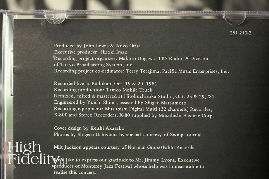 Nagranie | Koncert Reunion At Budokan 1981 odbył się na początku „reaktywacji” zespołu w latach 80. Miał on miejsce 19 i 20 października 1981 roku w Nippon Budōkan (jap. 日本武道館), z skrócie: Budokan. To jedna z najważniejszych hal widowiskowych Tokio, zbudowana w 1964 roku. Projektantem był Mamoru Yamada, odpowiedzialny również za Kyoto Tower, a także za wiele budynków powstałych z okazji Igrzysk Olimpijskich w Japonii (1964). Koncert odbył się w ramach serii występów Pioneer Live Special. Mamy tu do czynienia z pięknym połączeniem, wydawałoby się odległych rzeczy, które rzadko tak ładnie się komponują. Oto bowiem nagranie zostało dokonane na cyfrowym, 32-śladowym magnetofonie Mitsubishi X-800, wówczas absolutnej nowości i zmiksowane analogowo do dwuśladowego, cyfrowego magnetofonu X-80 tegoż producenta. Powiązanie polega na tym, że pionierami zapisu cyfrowego dźwięku na taśmie szpulowej byli inżynierowie NHK, japońskiego, narodowego konsorcjum radiowo-telewizyjnego. Bazowali zaś na pracy, jaką wykonano dla transmisji telewizyjnych w czasie, wspomnianych, Igrzysk Olimpijskich w 1964 roku. Tak więc dźwięk został zarejestrowany przez urządzenia, które bezpośrednio łączą się z miejscem, w którym zespół Modern Jazz Quartet dał koncert.