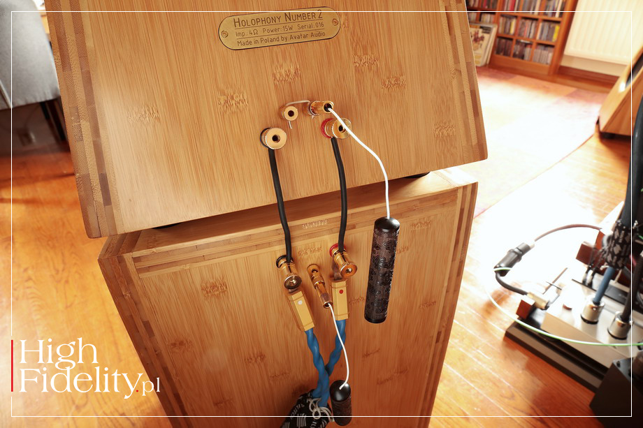 Rzecz w tym, że u siebie, w Osowiczach, ma do dyspozycji 60-metrowy, zaadaptowany akustycznie pokój odsłuchowy w budynku położonym w środku „niczego”. Czyli – absolutna cisza. Kolumny stoją w nim w odległości 2,5 metra od tylnej ściany, bo – jak mówi ich konstruktor – dopiero wtedy fale z przodu i tyłu właściwie się integrują i uzyskuje się z nich zarówno precyzyjną lokalizację na scenie, jak i wypełnienie dźwięku. Wspominam o Osowiczach nieprzypadkowo. To wieś położona w gminie Wasilków, w powiecie białostockim, licząca niespełna 240 mieszkańców. Wokół są tylko lasy, rzeczki i jeziora. Jednym słowem – bajka. Jak mówili państwo Andrejczukowie, letnie wieczory spędzają na balkonie, wgapieni w niebywale jasne gwiazdy nad nimi, słuchając muzyki przez, wysunięte na 5-metrowych tyczkach, kolumny Model Cztery. Dzisiaj, kiedy wszyscy potrzebujemy przestrzeni i spokoju, wizyta w pracowni Cezariusza wydaje się spełnieniem marzeń. Jeśli pojedziecie państwo do niego po kolumny, to – jestem tego pewien – możecie się zatrzymać w nieodległym gospodarstwie agroturystycznym i spędzić czas na słuchaniu muzyki oraz piciu wszystkiego, co najlepsze te tereny mają do zaoferowania… | Kilka prostych słów… CEZARIUSZ ANDREJCZUK Holophony Numer 2 MkII to nowa wersja znanego od 8 lat modelu. Od poprzedniej różni się radykalnie udoskonaloną zwrotnicą oraz poprawionymi warunkami pracy głośnika niskotonowego. Kolejne tysiące godzin pracy nad wyrównaniem pasma przenoszenia zwrotnicy przyniosły spektakularny efekt: powiększenie sceny dźwiękowej wraz ze wzrostem lokalizacji i separacji źródeł, nasycenie barw, wzrost rozdzielczości i mikrodynamiki. Ponieważ zwrotnica odpowiada za co najmniej 2/3 jakości dźwięku kolumn, wersję Mark II można uznać za nowy model Holophony. Poświęciliśmy też dużo uwagi poprawie reprodukcji niskich tonów. Poprzednio kosz woofera mocowany był do obudowy za pośrednictwem filcu, obecnie jest to 8 mm warstwa specjalnego gatunku korka rewelacyjnie tłumiącego wibracje. Tył kosza został dociśnięty do ścianek obudowy nowo opracowaną konstrukcją. Wnętrze skrzyni niskotonowej otrzymało nowe wzmocnienia oraz zmieniony został sposób jego wypełnienia. Zabiegi te zdecydowanie poprawiły timing (szybkość i precyzję) basu oraz urealniły jego barwę. Dźwięk Holophony zyskał muzykalny i emocjonujący fundament. W modelu MkII użytkownik ma możliwość zmiany parametrów otworu bas-refleks: zmiany jego długości i średnicy lub całkowitego zatkania. Umożliwia to samodzielną regulację ilości nasycenia i szybkości niskich tonów. Do dyspozycji jest sześć kombinacji, co umożliwia adaptację do warunków pomieszczenia, charakterystyki systemu oraz indywidualnego gustu. Dodatkowo poprzez wybór poszczególnych wariantów można znacząco wpływać na wielkość i precyzję budowy sceny dźwiękowej. CA | Holophony Numer Dwa Mk2 Kolumny Numer Dwa, część serii Holophony, po raz pierwszy zostały zaprezentowane w maju 2016 roku; więcej TUTAJ (test TUTAJ). To duże, dwuczęściowe, trójdrożne kolumny. Cezariusz uważa, że najlepiej rozdzielczość nagrań oddają stare głośniki pochodzące z lat 50. i 60. z papierowymi, niepowlekanymi membranami. W kolumnach o których mowa zastosował więc przetworniki NOS o średnicach 100, 200 i 300 mm (odpowiednio: wysokotonowy, średniotonowy i niskotonowy). W górnym module znalazły się dwa pierwsze, w dolnym, dużym – głośnik basowy. To ostatni model w ofercie, który otrzymał obudowę bambusową, w miejsce płyt MDF. Dlatego też producent zrezygnował z dopisku ‘Bamboo’ przy nowych modelach, dodając tylko ‘Mk2’. Oprócz nowej obudowy w każdym modelu wprowadził także kilkanaście poprawek, które laikowi mogą się wydawać niewielkie. Dojście do nich zajęło mu jednak mnóstwo czasu. Podobnie, jak wcześniej, wszystkie połączenia elektryczne w testowanych kolumnach wykonane zostały bez lutowania, a więc bez wykorzystania cyny, przez zaciskanie. À propos zaciskania – zaciski głośnikowe, solidne, złocone, znajdują się zarówno w module niskotonowym, jak i średnio-wysokotonowym. Konstruktor Holophony Numer Dwa Mk2 stosuje u siebie bi-wiring. Ja za nim nie przepadam, poza tym wszystkie moje kable głośnikowe są zakończone klasycznie (pojedynczo). Cezariusz o tym wie, dlatego przywiózł do mnie krótkie odcinki miedzianej plecionki, które posłużyły jako zwory. Kolumny stoją na specjalnych nóżkach, zmodyfikowanych przez szefa Avatara, które można też kupić osobno. Są to dwa elementy z aluminium oddzielone neodymowym magnesem z dwoma dodatkowymi poziomami tłumienia drgań: trzema kulkami z twardego materiału, odsprzęgającymi od siebie dwie części, wspierające się wspólnie na poduszce magnetycznej oraz średniotwardy materiał na dole i na górze nóżek. Podobne podstawy, tyle że mniejsze, oddzielają moduł niskotonowy od średnio-wysokotonowego. Powtórzę, to pokaźne konstrukcje, ważące 40 kg (szt.) i mierzące 1160 x 350 x 480 mm. Kolumny dostarczane są w trzech schludnych, wykonanych z płyty MDF, skrzyniach i objęte są trzyletnią gwarancją producenta. BAS-REFLEKS | Moduł średnio-wysokotonowy ma budowę zamkniętą, a niskotonowy – bas-refleks. Jego strojenie zajęło konstruktorowi mnóstwo czasu i ostatecznie nie zdecydował się na jedno rozwiązanie. Zamiast niego dał użytkownikom do ręki narzędzie, za pomocą którego można będzie dostosować dźwięk do danego pomieszczenia i gustów. W komplecie otrzymałem bowiem rurki o różnej długości, które można montować nie tylko wewnątrz obudowy, ale i na zewnątrz. Można je zresztą łączyć, wybierając odpowiednie tłumienie i częstotliwość rezonansową. | ODSŁUCH JAK SŁUCHALIŚMY | Kolumny ustawił u mnie ich konstruktor. Jak mówi, najlepiej jeśliby stały dwa i pół metra od tylnej ś