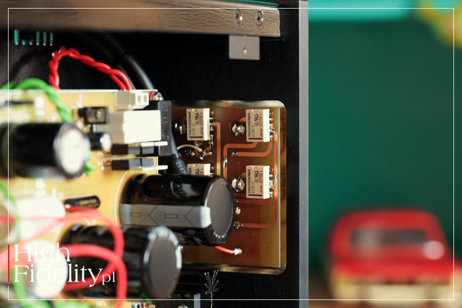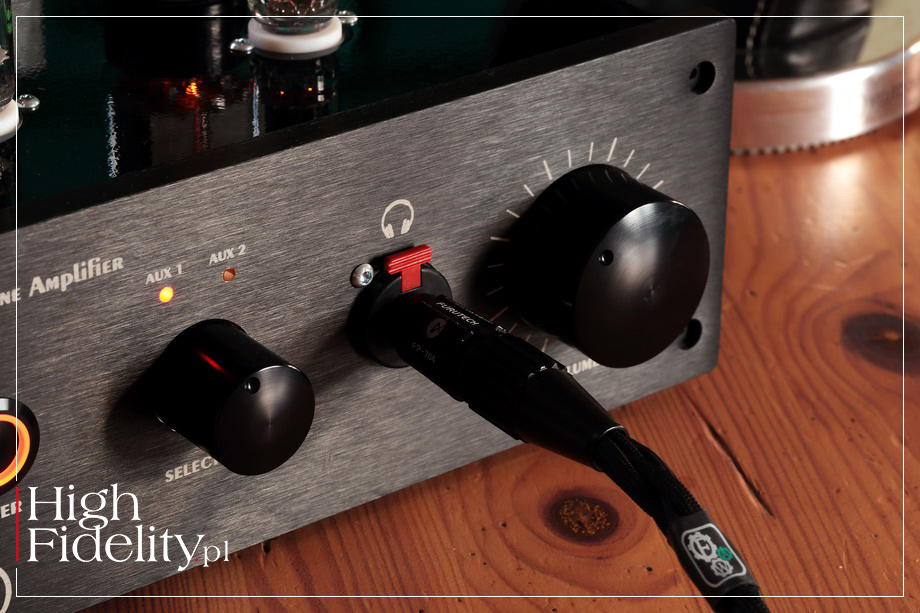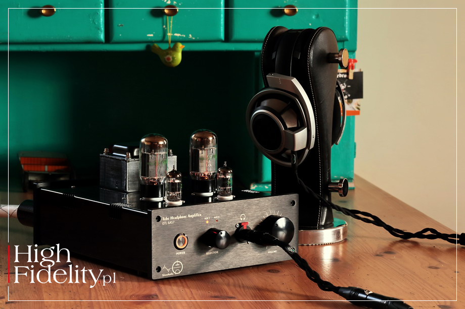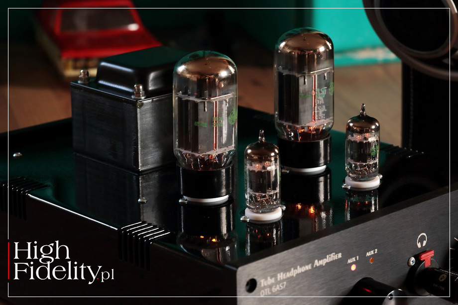 ⸤ Pierwsze egzemplarze lampowych wzmacniaczy słuchawkowych powstały w mojej firmie pod koniec października 2017 roku. Były to modele OTL 6N6P oraz OTL 6N13S. Później dołączył do nich triodowy wzmacniacz OTL na znakomitych lampach 6C4C (siostra 2A3). Od tego czasu moje wzmacniacz jak i jego budowa bardzo się rozwinęła. Najnowszy model, ten w teście, posiada aktywną filtrację + dodatkowy człon filtrujący napięcie anodowe. Rozdzieliłem w nim napięcia anodowe obydwu kanałów, aby poprawić głębię sceny oraz stereofonię. Wersja ProAudio ma inną obudowę niż standardowa – wykonana została z paneli ALU o grubości 10 mm –selektor wejść oraz wyjście, dzięki któremu może pracować jako przedwzmacniacz. Lampa ECC82 (12AU7) pracuje w układzie SRPP, natomiast 6N13S w typowym układzie wtórnika z wysokim prądem spoczynkowym. To wzmacniacza typu OTL, czyli Output Transformer-Less. Dlaczego OTL? Przede wszystkim dlatego, że układ OTL gwarantuje przyjemny odsłuch. Jak wiadomo, jakość dźwięku w tego typu konstrukcjach zależy przede wszystkim od kondensatorów sprzęgających. Wybór kondensatorów na rynku jest bardzo szeroki, barwę możemy dobrać pod konkretne wymagania klienta. OTL jest jednak bardzo wrażliwy na impedancję słuchawek. Im mniejsza, tym większe zniekształcenia układu. OTL 6N6P jest stworzony do słuchawek o impedancji powyżej 100 Ω, a testowany wzmacniacz 6AS7 OTL ProAudio został zaprojektowany z myślą o słuchawkach niskoimpedacyjnych. Bez problemu radzi sobie ze słuchawkami planarnymi. Wzmacniacz słuchawkowy na transformatorach głośnikowych wymaga bardzo dobrego opracowania transformatora (uzwojenia, sekcje, doskonała dokładność nawijania uzwojeń itp.), aby zachwycił brzmieniem. A to wszystko kosztuje. Postawiłem więc na dobry dźwięk i niską cenę. Z mojego doświadczenia wynika, że testowany wzmacniacz doskonale spisuję się z: Sennheiser HD800, Sennheiser HD600 oraz Audeze LCD-2. MJ | OTL 6AS7 ProAudio ⸤ Testowany wzmacniacz przeznaczony jest do odsłuchu słuchawkowego. To konstrukcja lampowa, z półprzewodnikowym zasilaczem, typu OTL. Skrót OTL oznacza, że na wyjściu mamy nie transformatory, jak w klasycznym wzmacniaczu lampowym, a kondensatory sprzęgające. Urządzenie oferuje dwa wejścia, wybierane małym pokrętłem na przedniej ściance, oraz jedno wyjście typu TRS 6,3 mm. Jest też wyjście liniowe, dzięki któremu OTL 6AS7 ProAudio może pracować jako przedwzmacniacz liniowy. Gniazda RCA są bardzo ładne, to produkty amerykańskiej firmy CMC. Wyjście TSR jest z kolei bardzo solidne – to konstrukcja szwajcarskiego Neutrika, ze złoconymi stykami i zatrzaskiem, który uniemożliwia wypadnięcie wtyku z gniazda. To ułatwienie wprowadzone dla ludzi pracujących na estradzie i w studiu, w domu mniej przydatne, ale wygląda bardzo fajnie i daje poczucie obcowania z profesjonalnym produktem. Na przedniej ściance, poza wyjściem słuchawkowym są dwie gałki i wyłącznik zasilania – ten ostatni bardzo dobry, podświetlany; z takiego samego korzysta, na przykład, firma Lumïn. Mniejszą gałka, koło której mamy dwie diody świecące (LED) o pomarańczowym kolorze, zmieniamy wejście, a większą – siłę głosu. Na górnej ściance widać cztery lampy, po dwie na kanał, i to one przyciągają wzrok. Na wejściu pracuje lampa NOS, podwójna trioda małej mocy 5751 (5-stars, triple mica, odpowiednik ECC82), firmy General Electric. Od tego samego producenta pochodzi duża, podwójna trioda wyjściowa, model 6AS7.