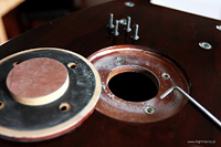 The use of the horn also determines other things. First of all, the listener's head needs to be close to the tweeter level. Sitting below the tweeter level results in losing a part of treble and the upper midrange becoming less selective. That's one of the advantages of this design - the upper range has a clear attack, is shown directly, without "beating around the bush". And again – in classic designs it would cause anxiety and fatigue in a longer listen. Here the treble is silky and very vivid, even on inferior produced recordings. There is no sign of "material fatigue". There is plenty of sounds and information, but it makes sense. Conclusion The DC10As are beautifully crafted speakers. Their heart is a unique driver, manufactured the same way as it used to be forty years ago, save for using modern tools. I see their role this was: if anyone would like to have the advantages of classic-looking Tannoys (of course classic for Tannoy) – large, old-fashioned cabinets – but with a modern twist, the choice is the DC10A. DESIGN Tannoy is primarily known for its Dual Concentric system. It consists of two coaxial transducers – a mid-bass driver with a large cone in the center of which is placed a metal horn hiding a large dome tweeter. The DC10A under review employs drivers with the diameter of, respectively, 10 inch (205 mm) and 2 inch (51 mm). The mid-bass driver is a new unit, using Alcomax 3 Alnico magnets. The voice coil has the diameter of two inch (52 mm). The speaker has a vented cabinet design with two large vents on the rear panel. The DC10A is a very large design. Its cabinet’s shape is quite elaborate – the front baffle is flat, like the back. The latter is narrow, with parabolic curved side walls. The cabinet is made of ply-based laminate. The entire enclosure is made of several different types of wood in Differential Material Technology (DMT), and is covered with high-quality, natural veneer. The speakers are finished in high-gloss lacquer.