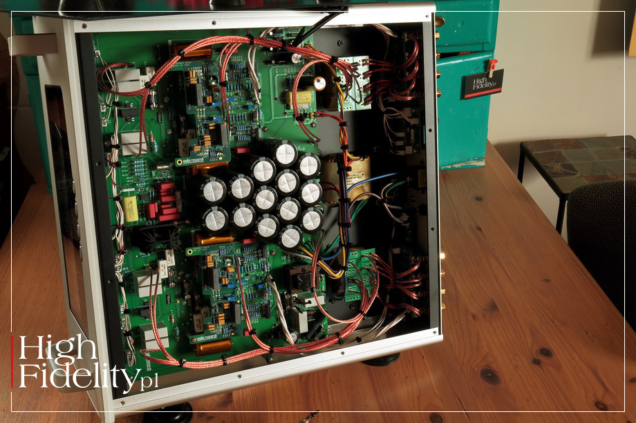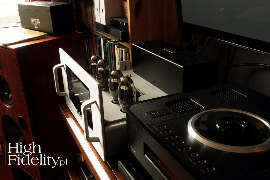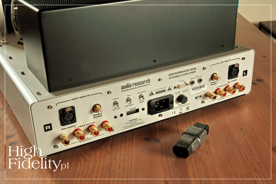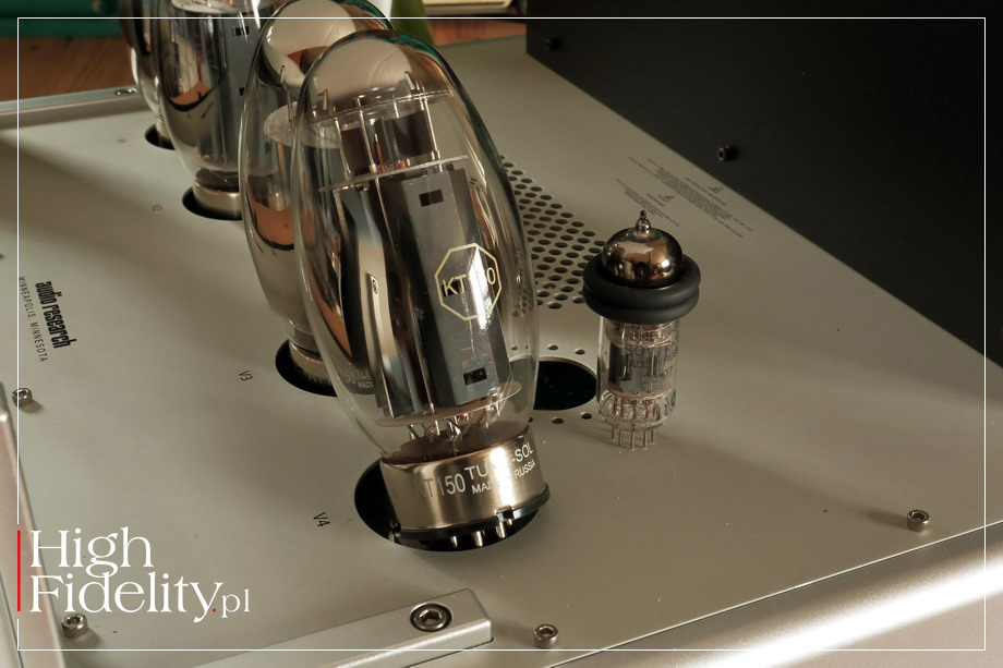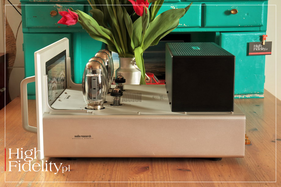 Było to przy tym mocne granie, gęste granie, granie wysycone. Urządzenie buduje duże źródła pozorne i pokazuje pokaźną masę – jak wtedy, kiedy w czwartej minucie utworu Epitaph z debiutanckiej płyty King Crimson uderzają kotły – były one mocne, gęste i – powiedzmy to wreszcie – dynamiczne. Rosnący wolumen dźwięku, forte wszystkich instrumentów, narastające przez całą 7 i 8 minutę, wszystko to zostało przez amerykański wzmacniacz pokazane dokładnie tak, jakbym sobie tego życzył. Mamy więc duże, gęste i – dodajmy – nieco ciepłe granie o świetnej głębi barwnej i dużej swobodzie grania. Reference 80S pokazuje duży, mocny bas, choć bez wyraźnych krawędzi i szczególnej selektywności. Jego wysoka moc gwarantuje dużą skalę, ale bez przeciągania niskich tonów. Kolumny Harbeth M40.1 nie należą do najłatwiejszych konstrukcji na rynku, a jednak Audio Research ładnie sobie z nimi poradził, z wszystkimi płytami będąc ich partnerem, a nie petentem. Testowany wzmacniacz ma swój „dźwięk własny” – patrz wyżej – a mimo to nie narzuca go nagraniom. Słuchany tuż po dwóch płytach o których mówiłem, przecież bardzo dynamicznych i o dużym wolumenie, JOHNY CASH z towarzystwem tylko swojej gitary Roseanne Cash Series Martin [OM-28], tzw. „Black Martin”, miał bowiem inne proporcje, inny wyraz. To wciąż było ciepłe, duże brzmienie, ale bez powiększania wokalu i bez przybliżania gitary, która została przez miksera Vlado Meyera umieszczona dalej niż wokalista. W równie uważny sposób potraktowany został również FRANK SINATRA, grany z właśnie wydanej przez japoński magazyn „Stereo Sound” na hybrydowym krążku SACD płycie Sinatras’s Sinatra. Wokalista miał bardzo podobny wolumen, jak ze wzmacniaczem odniesienia, a kontrabas, który został świetnie w tej wersji wyeksponowany, miał równie dobrą wagę i to on „budował” skalę tego przestawienia. Bardzo dobrze ukazany został również pogłos nałożony na wokal, różniący się od pogłosu słyszanego z instrumentami – by on dłuższy, jaśniejszy, po prostu większy. ⸤ TRIODE vs TETRODE Może to więc dobry moment, aby powiedzieć słowo lub dwa o dwóch dostępnych w tym wzmacniaczu trybach pracy lamp końcowych: tetrodowej (pentodowej) oraz triodowej. W tej drugiej dwie siatki są zwierane i lampa pracuje w podobny sposób, jak klasyczna trioda. Moc jest o połowę niższa, ale tor sygnału prostszy, a przez to dostajemy – przynajmniej w teorii – lepszy dźwięk. W testowanym wzmacniaczu zmiana dostępna jest „w locie”, porównanie było więc wyjątkowo proste. Powiem wprost: w tym przypadku, w połączeniu z wymagającymi kolumnami, tryb tetrodowy wydał mi się znacznie ciekawszy. To z nim muzyka miała rozmach, wolumen był duży, źródła pozorne miały dużą skalę, a przekaz jako całość był swobodny. W trybie triodowym wszystko było również bardzo fajne, ale też wszystko „siadało”, było ciut mniejsze, ciut mniej dynamiczne i ciut mniej wciągające. Nie pierwszy to raz, nie drugi, ani nawet trzeci, kiedy ponad audiofilskie stereotypy muszę przedłożyć praktykę. A ta pokazuje, że tryb tetrodowy w testowanym urządzeniu jest tak fajny, tak „wszystkoogarniający”, że delikatna poprawa klarowności, którą usłyszałem w trybie triodowym nie była warta zachodu. Co powiedziawszy nie przekreślam go zupełnie, ponieważ z łatwiejszymi do wysterowania kolumnami, przy niewielkich składach jazzowych, muzyką wokalną itp. może się to okazać właśnie TYM ustawieniem. Pozwolą państwo jednak, że ja pozostanę przy trybie tetrodowym. ⸤ PRZEDWZMACNIACZ Tym bardziej, że poprawę szczegółowości i detaliczności osiągniemy rezygnując z zewnętrznego przedwzmacniacza, jeśli tylko mamy wysokiej klasy preamp zainstalowany w źródle sygnału. Skala dźwięku będzie wówczas mniejsza, a wypełnienie nie tak piękne, ale rozdzielczość i klarowność – lepsze. Reference 80S bardzo ładnie zareagował na uproszczenie ścieżki sygnału, a to wcale nie jest reguła. ▌ PODSUMOWANIE Amerykański wzmacniacz oferuje gęste, ciepłe, mocne brzmienie w którym wysokie tony są obecne, ale podporządkowane są środkowi pasma i w którym bas ma ładną wysyconą barwę. Urządzenie to z powodzeniem gra różne typy muzyki i pokazuje ich barwy szczególne, mimo że ma na to swój własny – można powiedzieć „pogląd”. Wzmacniacz będzie się starał nasycić i dociążyć brzmienie, nigdy nie przekraczając przy tym granicy dobrego smaku. 80S nie sprawia wrażenia bardzo rozdzielczego, a przecież jest rozdzielczy, co słychać było najnowszą płytą, która właśnie przyszła do mnie z Japonii, zarejestrowanym bez dogrywek, na dwie ścieżki w DSD 11,2 MHz materiale TAKAYUGI YAGI TRIO, japońskiego pianisty jazowego. Dwa ostatnie utwory na płycie Blu-Spec CD nagrane zostały równolegle z DSD na – ciekawostka – magnetofonie kasetowym Nakamichi Dragon. Z Audio Research Reference 80S zmiana klasy brzmienia była niezwykle klarowna, ale nie przekreślająca. Dobrze słychać było, za co realizatorzy cenią to urządzenie, czyli za świetną barwę i niski, ładny bas. Co pokrywałoby się z tym, co słyszałem ze wzmacniaczem grając tych kilkadziesiąt utworów, często po kilka – 3, a nawet 4 – razy. To ułożone, ładne granie z pięknymi barwami i fantastycznym rozmachem, który przybiera jednak formę dużej skali i naturalnego obrazowania, a nie ponadprzeciętnej dynamiki. Świetna rzecz… ▌ BUDOWA AUDIO RESEARCH REFERENCE 80S JEST STEREOFONICZNYM WZMACNIACZEM MOCY. Jego dużą, solidną obudowę wykonano z aluminium. Ma bardzo duży front, który jednak wygląda bardzo lekko, a to za sprawą przeszklenia. Całość można zamknąć klatką, zabezpieczającą lampy przed nami i nas przed lampami, ale najlepiej wygląda bez niej. Wzmacniacz stoi na pięciu gumowych nóżkach