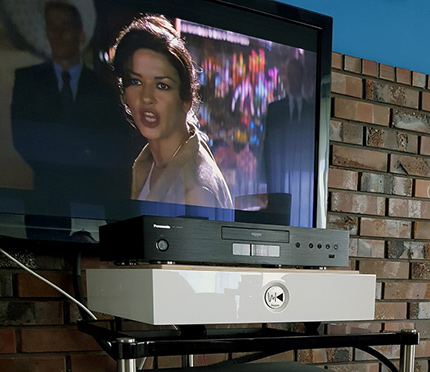Film ten oglądam już kolejny raz i łapię się na tym, że podczas tych scen zamiast słuchać dialogów i śledzić akcję, którą znam już prawie na pamięć, zafascynowanypatrzę na refleksy światła na włosach grającej główną rolę Catherine’y Zety-Jones, teatralną grę barw w miłosnej scenie, które ukazywane są poprzez błądzące po ich postaciach plamy świateł. Bardziej interesują mnie te aspekty niż to dlaczego Shon „nie może”. Tego w zasadzie do końca filmu się nie dowiadujemy. Być może producent uznał, że musi grupę odbiorców rozszerzyć do 15 lat i w związku z tym nie wypadało mówić, że Shon jako młody chłopak grał w drużynie futbolowej w college’u i zawodnik z przeciwnej drużyny pomylił jego rodzinne klejnoty z piłką (naprawdę słyszałem taką wersję w jednej z hollywoodzkich produkcji). ▌ FILM I DLACZEGO FILM ALE PO CO W OGÓLE OGLĄDAĆ jeden film kilka razy? Szczególnie thriller lub kryminał, gdzie i tak wiemy, jak się to wszystko skończy? Odpowiedź jest prosta – to zależy od tego co film sobą reprezentuje. Przynajmniej raz w roku włączam film, który po dziesięciu, piętnastu minutach zaczynam „oglądać” dalej na przewijaniu, łudząc się naiwnie, że jednak coś się zdarzy. Film jak każde inne dzieło ma wiele warstw, gdzie fabuła stanowi czasami ułamek całości. Oglądanie go jest dość złożonym przeżyciem estetycznym dostarczającym nam emocji na wielu poziomach. Na każdy film składa się praca kompozytora, który pisze do niego muzykę, jak również praca operatora, który odpowiada za zdjęcia i światło. Film to również kostiumy aktorów, miejsca w którym kręcone są poszczególne sceny. Wystarczy obejrzeć któreś z kolei Behind the scenes, dodatki, aby uświadomić sobie jak skomplikowany i złożony jest to proces, to całe kręcenie filmów. Są takie tytuły, które oglądałem kilkadziesiąt razy i pewnie obejrzę jeszcze kilkaset, jak zdrowie pozwoli. Są one moim zdaniem dziełami sztuki i to wcale nie poślednimi. Światło, ujęcia, muzyka, gra aktorska, dialogi i cała ta atmosfera – to jak kolejne wysłuchanie V Symfonii Mahlera, którą niby znam, ale zawsze wciąga i za każdym razem mam wrażenie, że usłyszałem coś nowego, jakiś szmerek, niuansik...! ▌ ORAZ OBRAZ KOLEJNY RAZ, JAK TO JUŻ W TRADYCJI JEST, podjęliśmy się podczas naszych Plichtowskich Spotkań Sonicznych PSS-Społem tematu, który niektórym, nawet w audio, nadal jeszcze kołkiem w gardle staje. Postanowiliśmy mianowicie sprawdzić: czy, a jeśli tak, to jak wpływają na obraz elementy antywibracyjne oraz kable zasilające. Rolę „królika doświadczalnego” pełnił topowy model odtwarzacza Blu-ray ULTRA HD DP-UB9000 firmy PANASONIC, wypożyczony na użytek naszego testu przez firmę PANASONIC MARKETING EUROPE GmbH Oddział w Polsce, podłączony do telewizora plazmowego Panasonic Full HD. Zamontowane w Blu-ray'u gniazdo IEC umożliwia, a może wręcz zachęca, do stosowania dowolnego kabla zasilającego. Dlaczego taki wybór sprzętowy i dlaczego nie materiał Ultra HD 4K? Powodów jest kilka, ale moim zdaniem najistotniejszym jest ten najbardziej prozaiczny. Prawdziwi miłośnicy kina posiadają filmów tysiące i to właśnie na nośnikach fizycznych, często zbieranych długimi latami. Zazwyczaj są to więc płyty DVD i BD, rzadziej wspomniany powyżej format, który jest po pierwsze bardzo drogi, po drugie niezbyt liczebny w tytuły. A po trzecie to format niepewny co do swojej przyszłości. Bardziej miarodajne wydawało mi się więc przeprowadzenie tego testu przy użyciu materiału DVD i BD. Bo ważniejsze jest odpowiedzenie na pytanie, czy w zastanych warunkach da się coś zmienić, coś jeszcze wymiernie poprawić, co zbliży nas jeszcze bardziej do wydarzeń pokazywanych w ulubionych filmach niż odpowiedź, czy wymieniać swoją kilkutysięczną wideotekę na filmy najnowszej generacji, co może równać się z kosztem budowy małego domu. Poza tym chodziło nam również o to, aby odtwarzacz Panasonic troszkę się pomęczył. ⸤ JAK OGLĄDALIŚMY Test polegał na tym, że najpierw obejrzeliśmy opisany już powyżej fragment filmu na „normalnym”, to jest komputerowym kablu zasilającym AC, potem z kablem WK AUDIO TheOne Mk2, a następnie z topowym modelem TheFog. Drugim krokiem było postawienie odtwarzacza Panasonic na platformie antywibracyjnej WK AUDIO Pure (test w HIGH FIDELITY TUTAJ). Prąd dostarczany był za pośrednictwem terminala zasilającego FURUTECH e-TP 809E NCF. Tutaj do testu posłużyły nam dwa filmy wydane na płytach Blu-ray: Casino Royale oraz Kingdom of Heaven. Podczas testu Blu-ray Panasonic podłączony był do telewizora plazmowego Panasonic Full HD za pośrednictwem kabla FURUTECH N1-4 HDMI. Urządzenie stało na stoliku NEO HIGH-END Tripod Light oraz na platformie antywibracyjnej WK AUDIO Pure. Korzystaliśmy z analogowych, zbalansowanych wyjść audio, podłączając Blu-ray do wzmacniacza VITUS RI-101 mkII za pośrednictwem kabla ARGRNTO AUDIO Serenity XLR. Test był dokonywany na materiale z płyty DVD upscalowanym do 1080p oraz na płytach Blu-ray z materiałem full HD 1080p. ⸜ UCZESTNICY SPOTKANIA