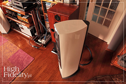 R 6 AVANTGARDE SĄ SKOMPLIKOWANYMI, złożonymi technicznie kolumnami. Aby głośniki pracowały w możliwie najlepszych dla siebie warunkach, obudowę wykonano tak, aby była maksymalnie sztywna, ale aby też nie magazynowała energii. Wielu producentów uważa bowiem, że nie cała, zgromadzona w ściankach i wytłumieniu energia, jest zamieniana na ciepło – część z niej jest transmitowana z powrotem, podbarwiając dźwięk. Obudowy testowanych kolumn wykonane zostały więc z twardego kompozytu drewnianego o wysokiej gęstości (HDF), które umożliwia uzyskanie najlepszej możliwej wytrzymałości i niskich podbarwień. Niepożądane drgania redukuje wygięcie ścianek bocznych w kształt łzy, zakończonej gruby, łączącym je elementem. Front obudowy jest laminowany, a całość jest dodatkowo wewnątrz usztywniona. Kształt łzy, o którym wspomnieliśmy, powoduje, że kolumny wydają się „lżejsze” optycznie. Pomaga w tym również specjalnie ukształtowany cokół. Właściwa kolumna została ścięta pod kątem, a od spodu przykręcono coś w rodzaju „klina” z otwartym dołem i bokami – te zakryte są siateczką. Zabiegi te konieczne były, ponieważ chodziło o to, aby umieszczony tam głośnik niskotonowy mógł swobodnie wypromieniować dźwięk. Warto więc postawić kolumny na kolcach – są w komplecie, w dodatku naprawdę ładne – ponieważ dopiero wówczas otrzymamy dźwięk, o jaki chodziło konstruktorom. Wszystkie te zabiegi pozwoliły osiągnąć szerokie pasmo przenoszenia – od 26 Hz do 52 kHz, a także wysoką skuteczność – 91,5 dB. Producent deklaruje również 8-omową impedancję nominalną i wysoką obciążalność – R 6 Avantgarde mają moc 450 W. Dodajmy, że kolumny dostępne są w szerokiej gamie naturalnych oklein i lakierów. W teście mieliśmy wersję białą. ▌ ODSŁUCH ⸤ JAK SŁUCHALIŚMY Kolumny Audiovectora stanęły w odległości 250 cm od siebie i w odległości 210 cm od miejsca odsłuchowego. Myślę, że to minimalna odległość od słuchacza, z jaką powinny pracować. Ważne też, aby nie stały zbyt blisko ścian tylnych – w moim przypadku było to 70 cm (licząc od ściankę tylnych). Warto też zadbać o to, aby głośnik wysokotonowy nie był zbyt wysoko – dlatego też odległość od kolumn 3 metry i więcej będzie optymalna. Kolumny skierowałem na miejsce odsłuchowe, ale lepiej zagrały skręcone jeszcze bardziej do środka. Audiovector R 6 Avantgarde porównywane były do kolumn Harbeth M40.1 stojących na, wykonanych na zamówienie, podstawkach japońskiej firmy Acoustic Revive ze stopami antywibracyjnymi Pro Audio Bono. Sygnał ze wzmacniacza tranzystorowego Soulution 710 przesyłany był kablami głośnikowymi Siltech Triple Crown. Płyty użyte w teście | wybór ⸜ DEAD CAN DANCE, Into The Labyrinth, 4AD/Beggars Japan WPCB-10076, „Audiophile Edition”, SACD/CD (1994/2008). |